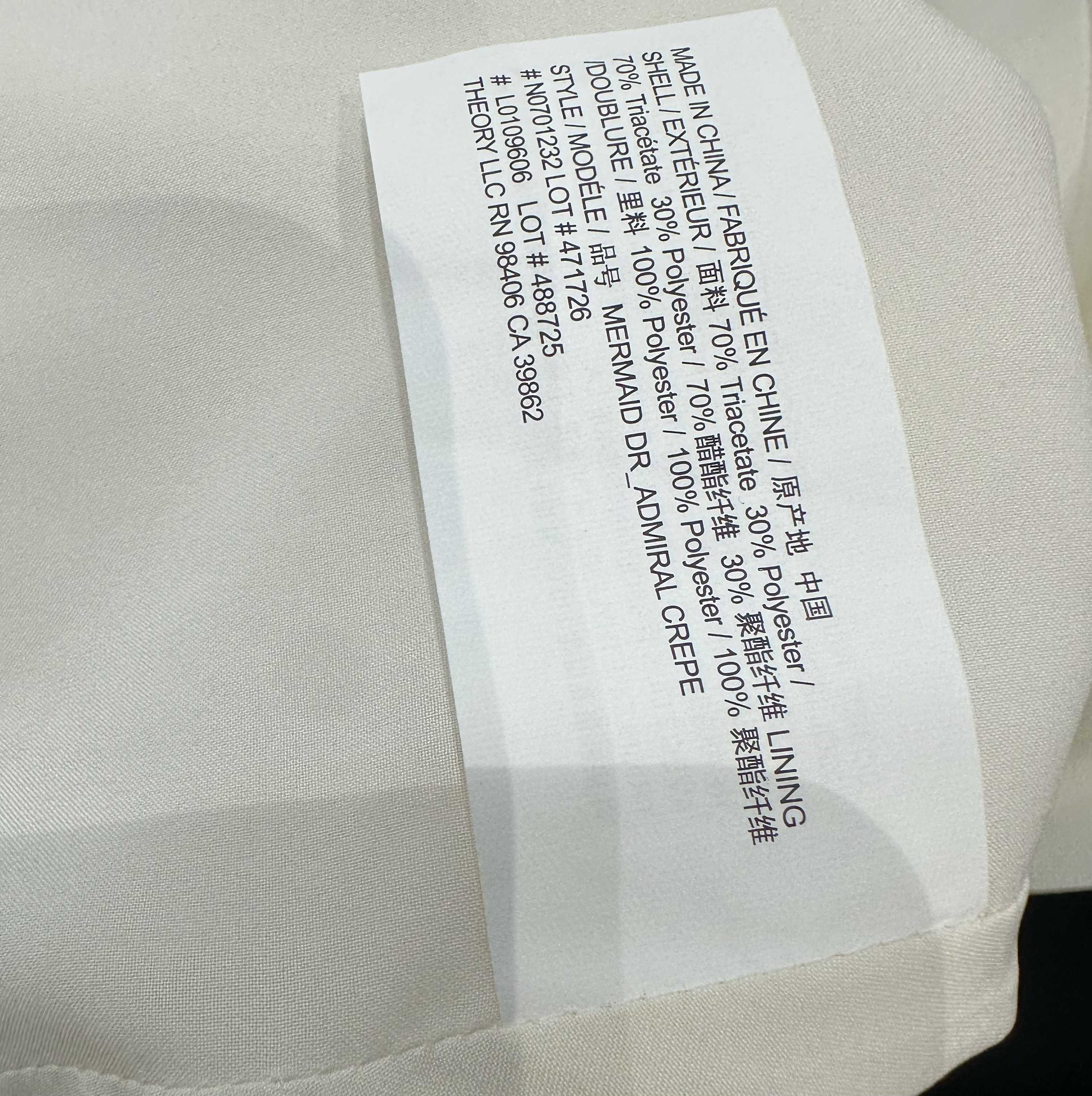 這款衣服是AAAAA 1:1 質量(非常棒). 使用了和原版一模一樣的材料. 商標部分也保持了和Theory一樣. 圖片拍攝是實物衣服拍攝, 您所收到的實物保證和我們圖片一模一樣.