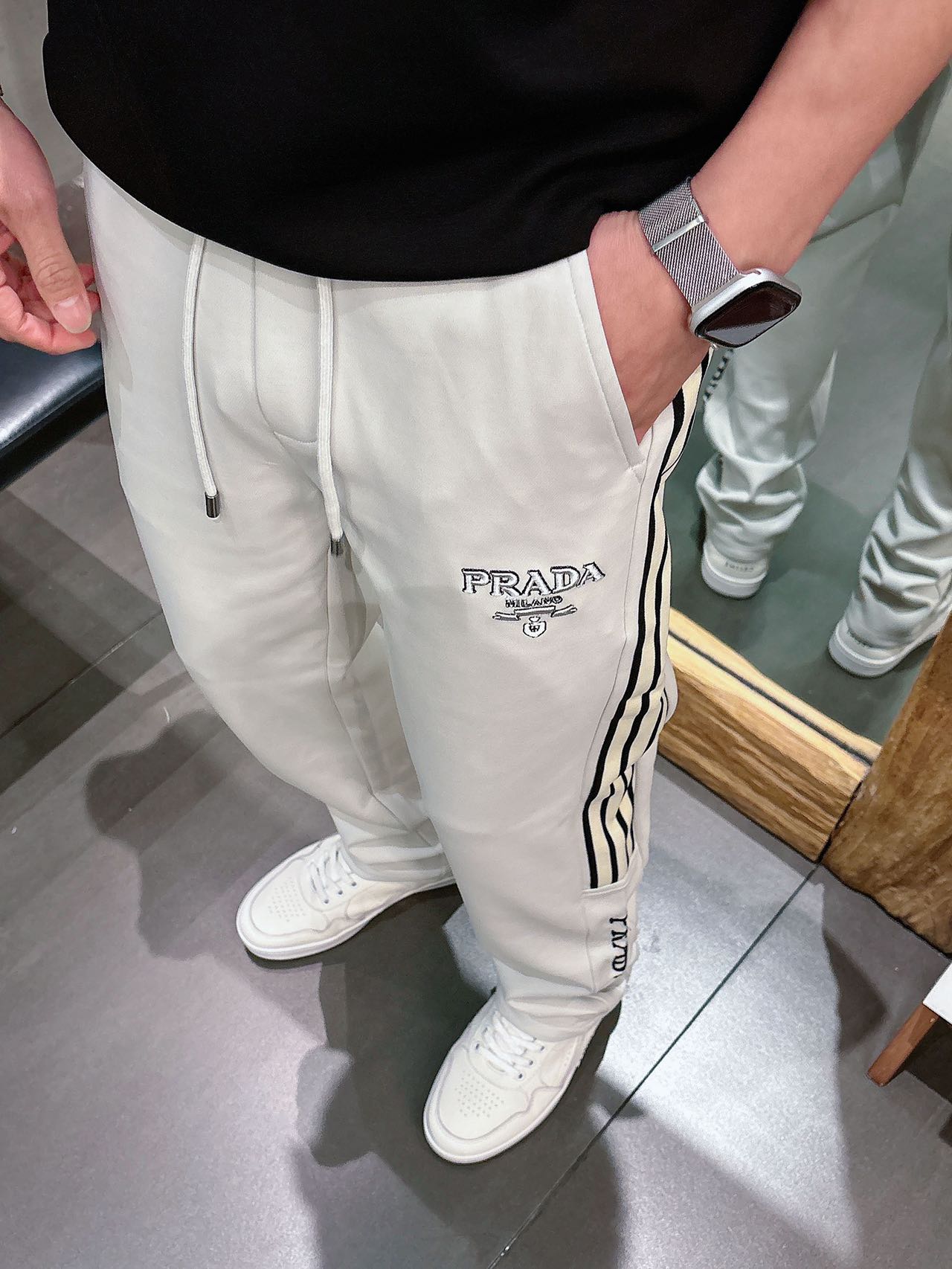 這款衣服是AAAAA 1:1 質量(非常棒). 使用了和原版一模一樣的材料. 商標部分也保持了和普拉達/Prada一樣. 圖片拍攝是實物衣服拍攝, 您所收到的實物保證和我們圖片一模一樣.
