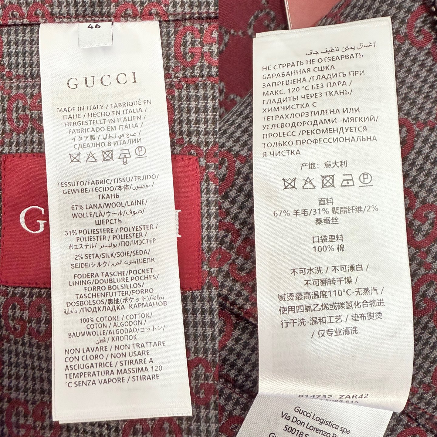 這款衣服是AAAAA 1:1 質量(非常棒). 使用了和原版一模一樣的材料. 商標部分也保持了和古奇/Gucci一樣. 圖片拍攝是實物衣服拍攝, 您所收到的實物保證和我們圖片一模一樣.