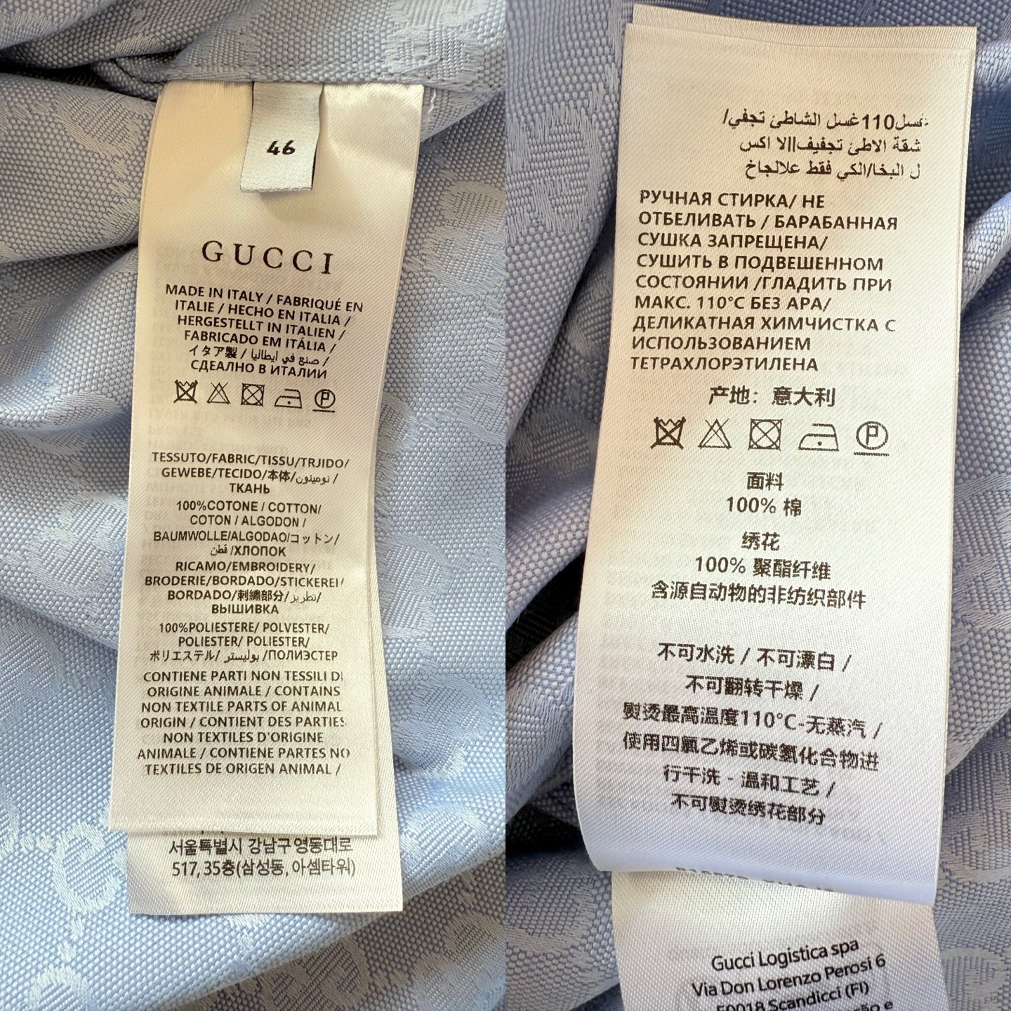這款衣服是AAAAA 1:1 質量(非常棒). 使用了和原版一模一樣的材料. 商標部分也保持了和古奇/Gucci一樣. 圖片拍攝是實物衣服拍攝, 您所收到的實物保證和我們圖片一模一樣.