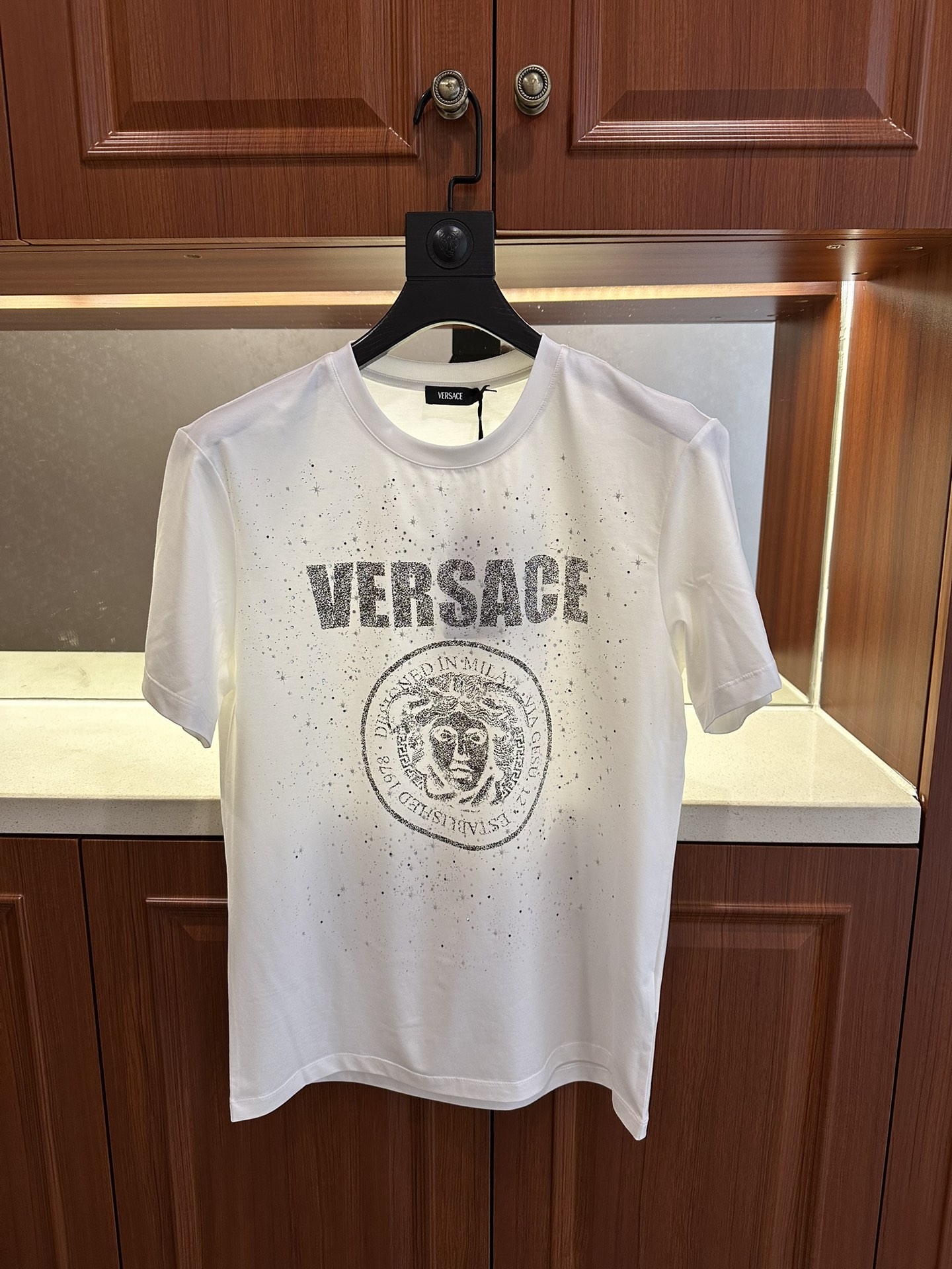 這款衣服是AAAAA 1:1 質量(非常棒). 使用了和原版一模一樣的材料. 商標部分也保持了和范思哲/Versace一樣. 圖片拍攝是實物衣服拍攝, 您所收到的實物保證和我們圖片一模一樣.