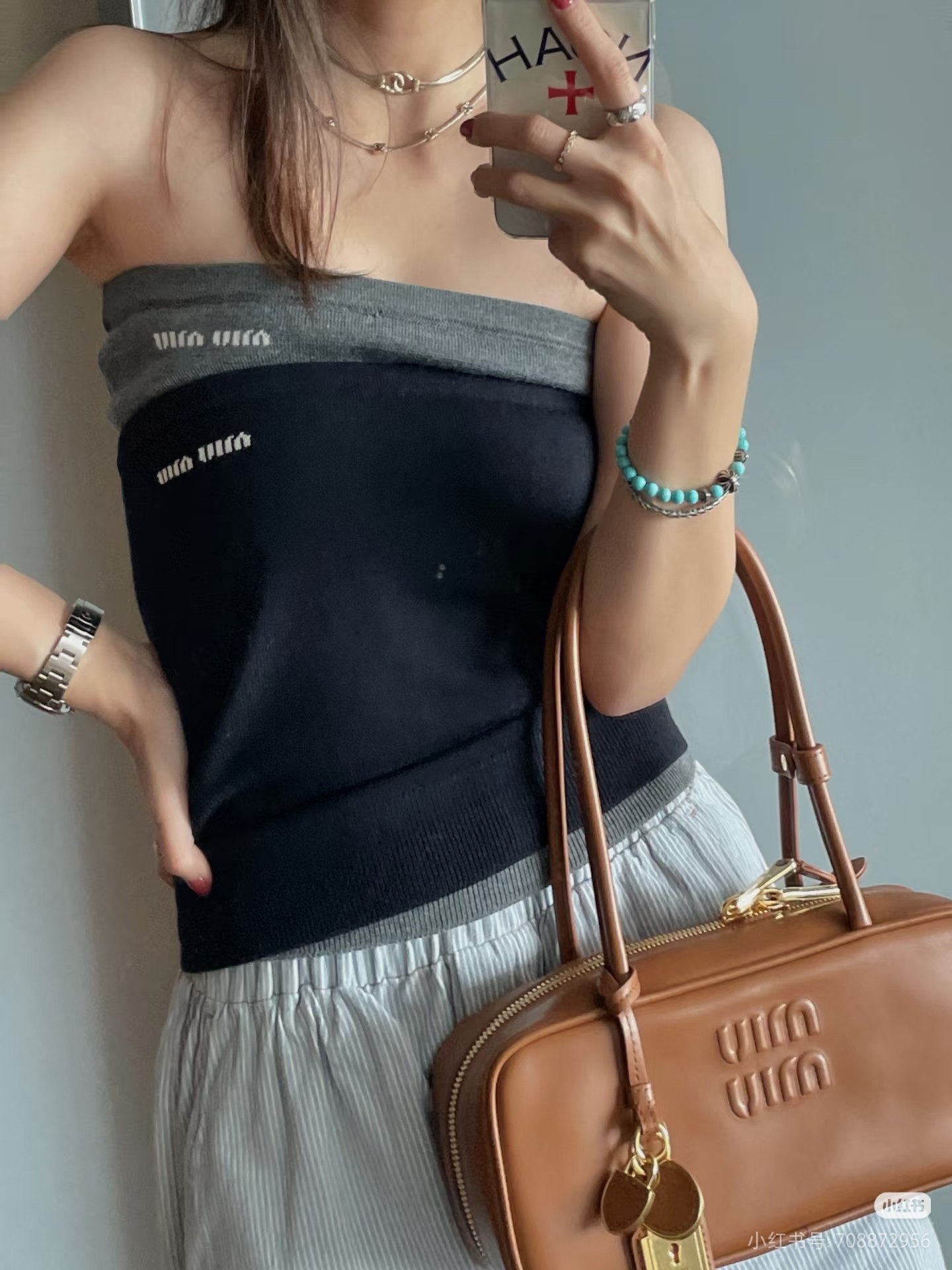 這款衣服是AAAAA 1:1 質量(非常棒). 使用了和原版一模一樣的材料. 商標部分也保持了和繆繆/Miu Miu一樣. 圖片拍攝是實物衣服拍攝, 您所收到的實物保證和我們圖片一模一樣.