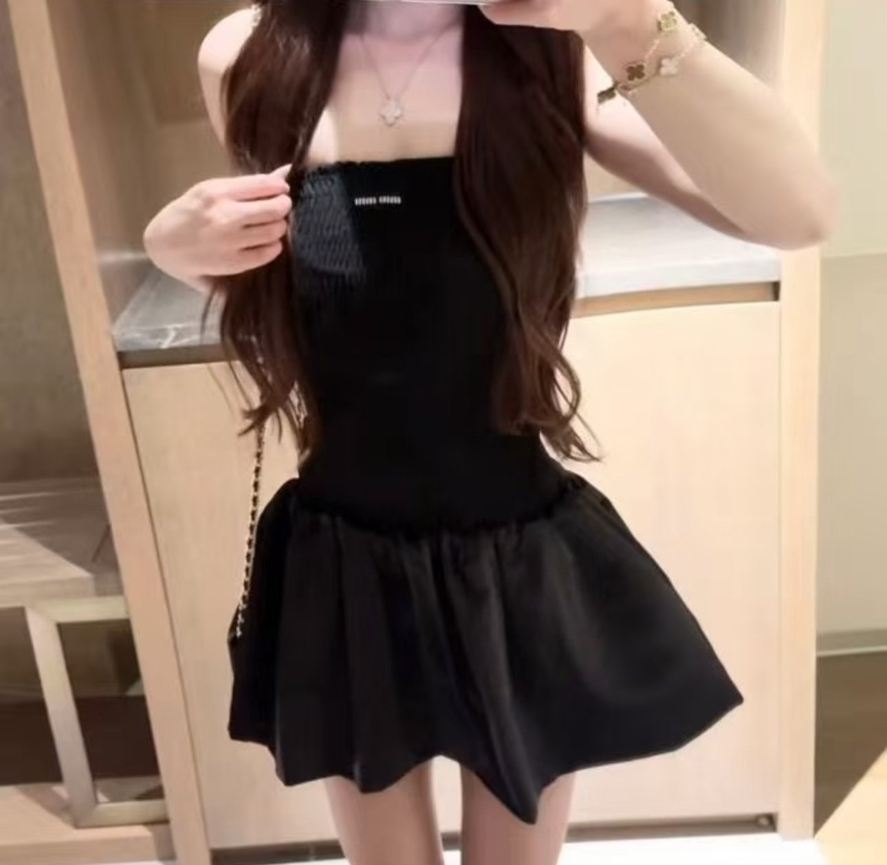 這款衣服是AAAAA 1:1 質量(非常棒). 使用了和原版一模一樣的材料. 商標部分也保持了和繆繆/Miu Miu一樣. 圖片拍攝是實物衣服拍攝, 您所收到的實物保證和我們圖片一模一樣.
