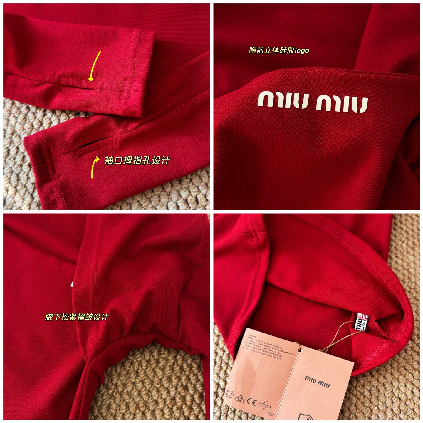 這款衣服是AAAAA 1:1 質量(非常棒). 使用了和原版一模一樣的材料. 商標部分也保持了和繆繆/Miu Miu一樣. 圖片拍攝是實物衣服拍攝, 您所收到的實物保證和我們圖片一模一樣.