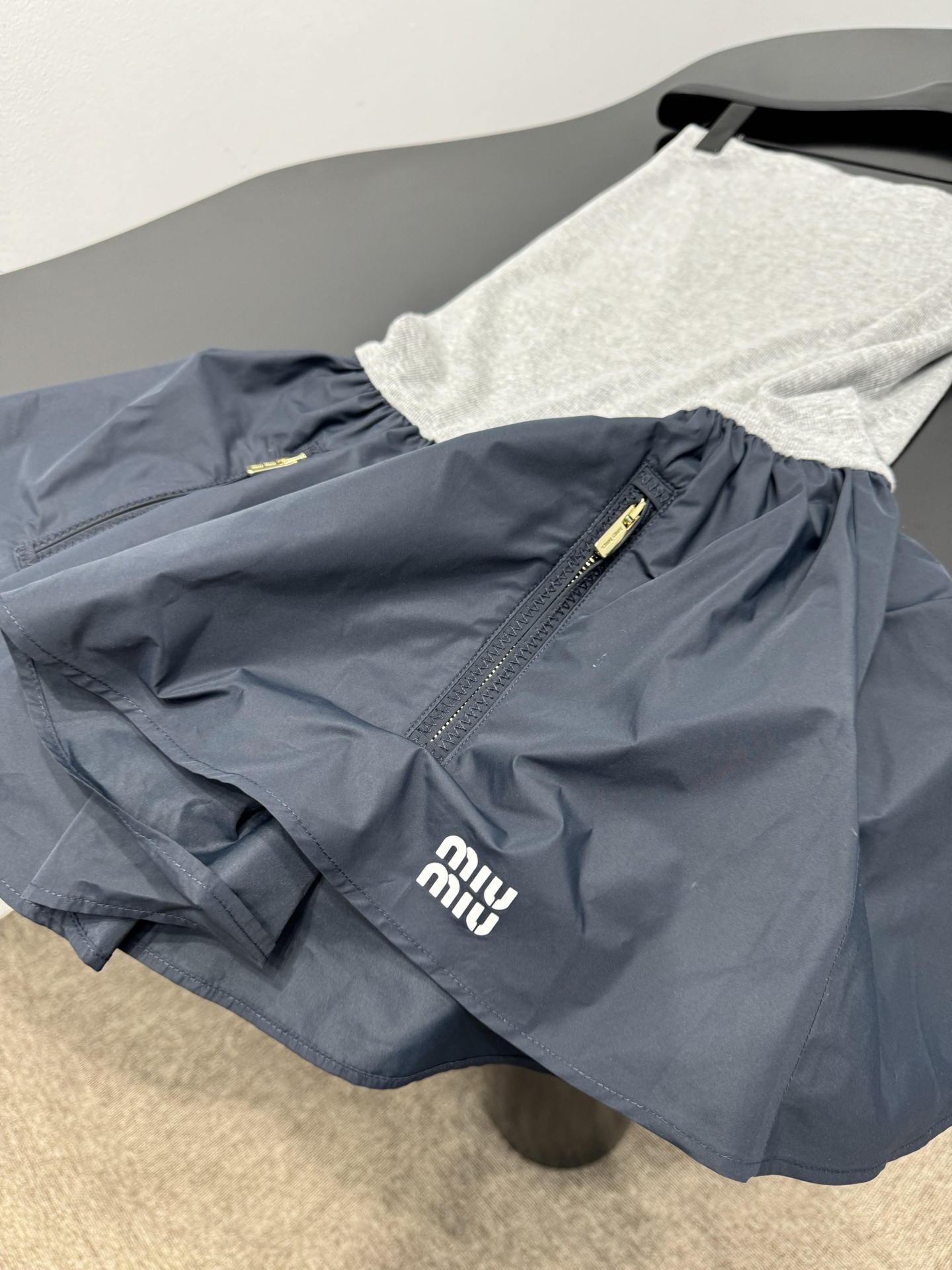 這款衣服是AAAAA 1:1 質量(非常棒). 使用了和原版一模一樣的材料. 商標部分也保持了和繆繆/Miu Miu一樣. 圖片拍攝是實物衣服拍攝, 您所收到的實物保證和我們圖片一模一樣.