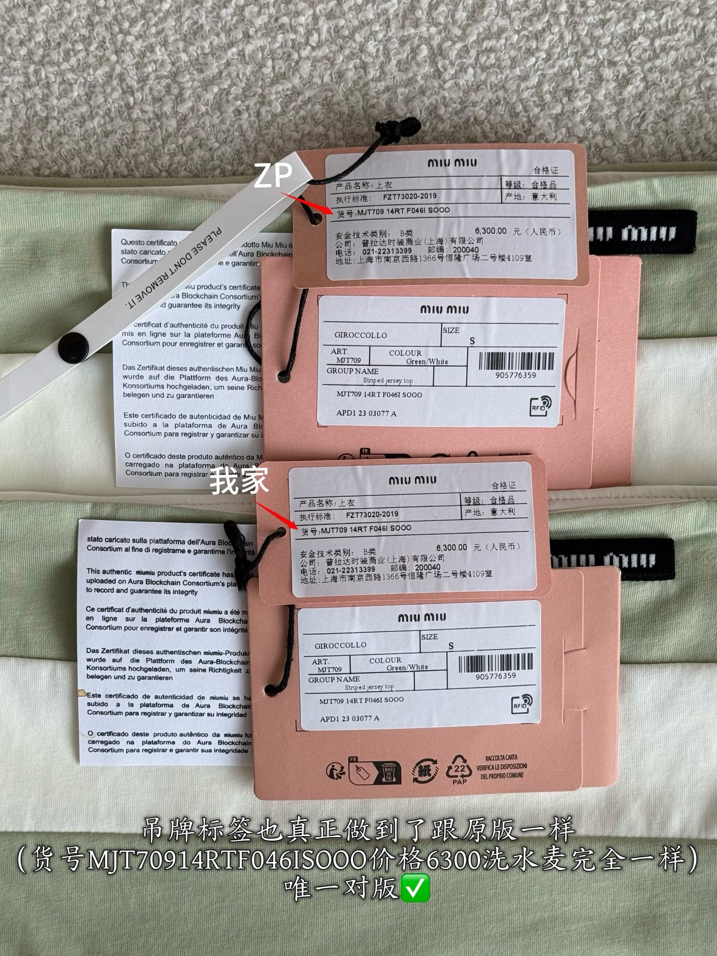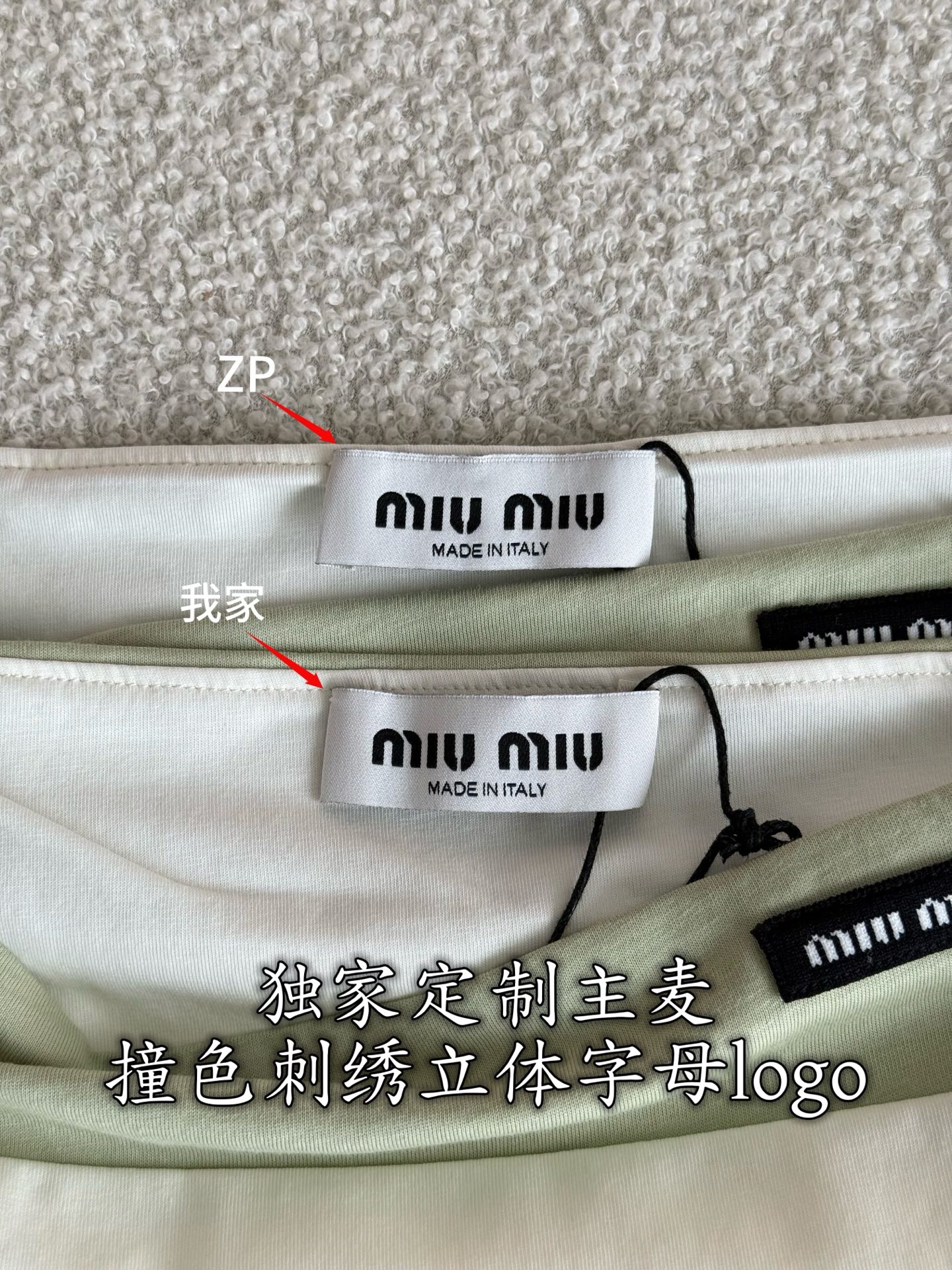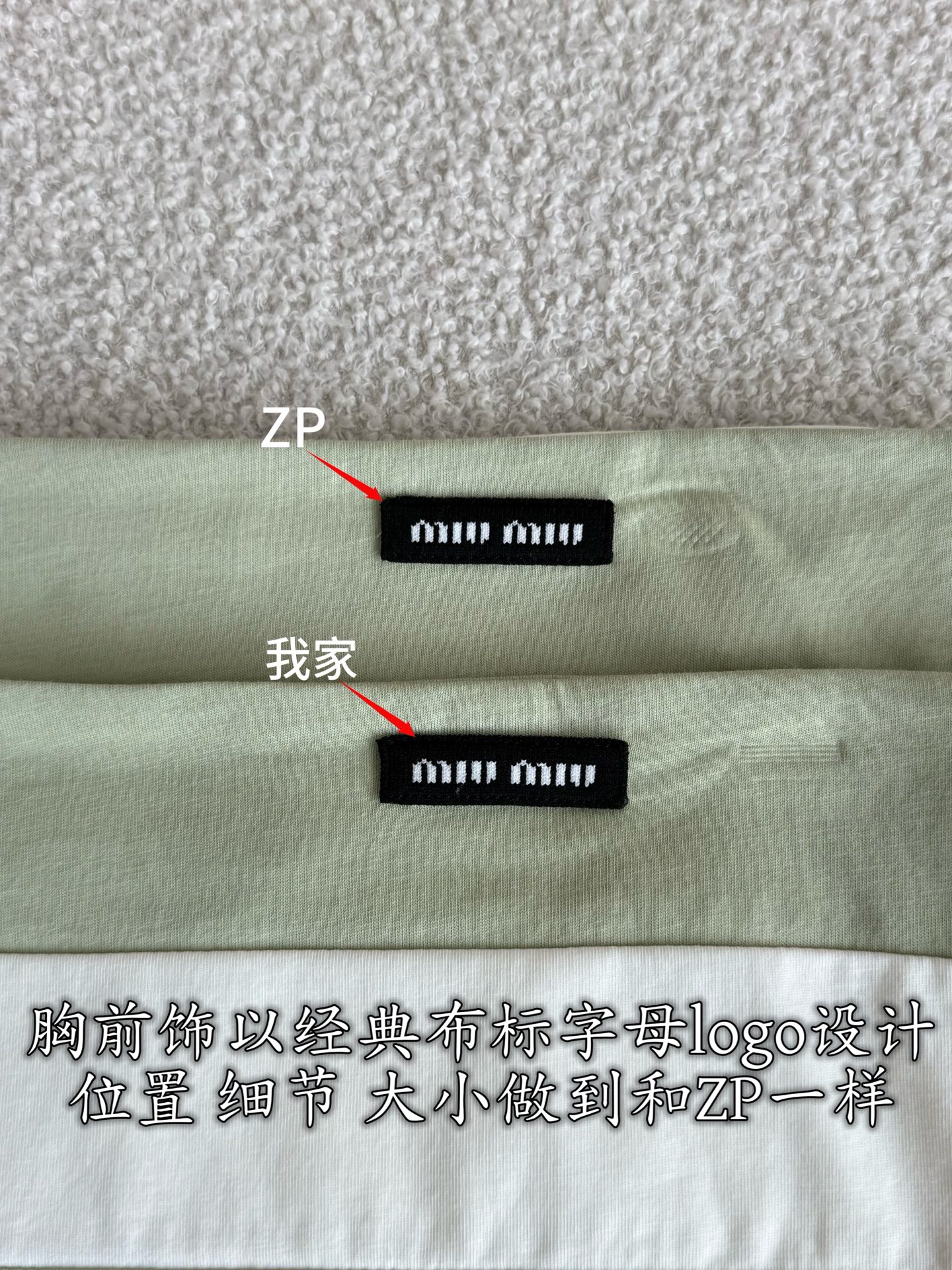 這款衣服是AAAAA 1:1 質量(非常棒). 使用了和原版一模一樣的材料. 商標部分也保持了和繆繆/Miu Miu一樣. 圖片拍攝是實物衣服拍攝, 您所收到的實物保證和我們圖片一模一樣.