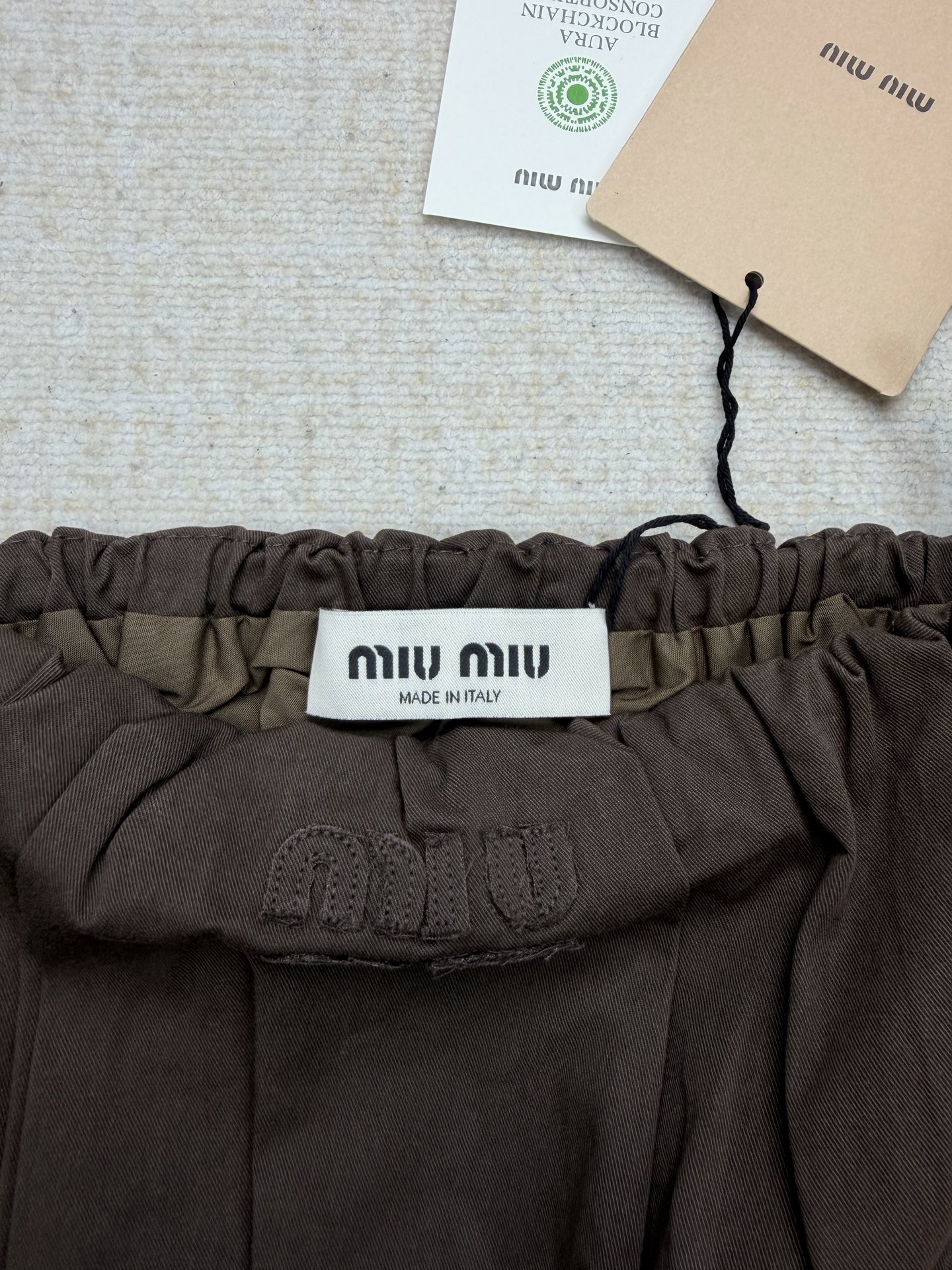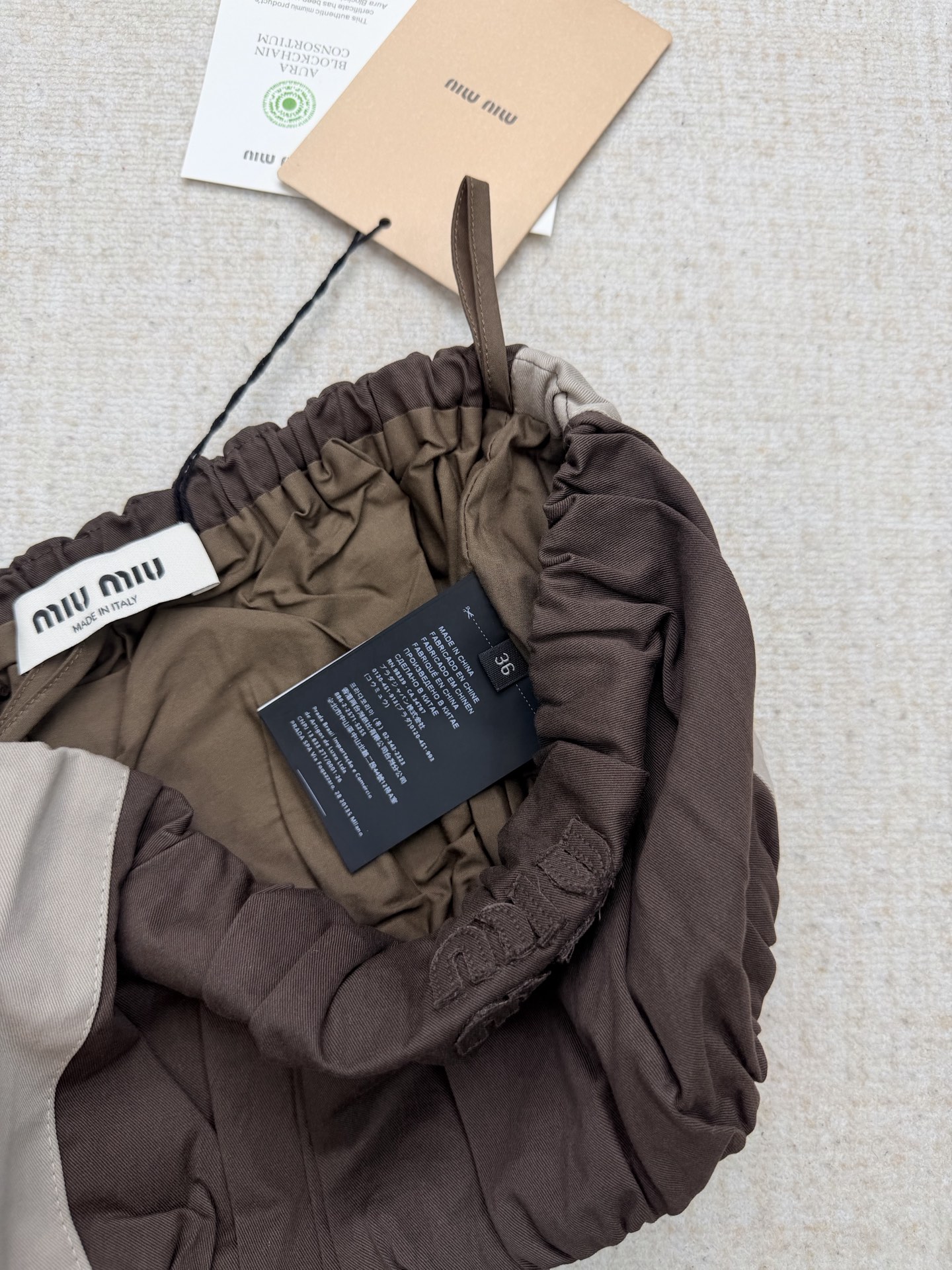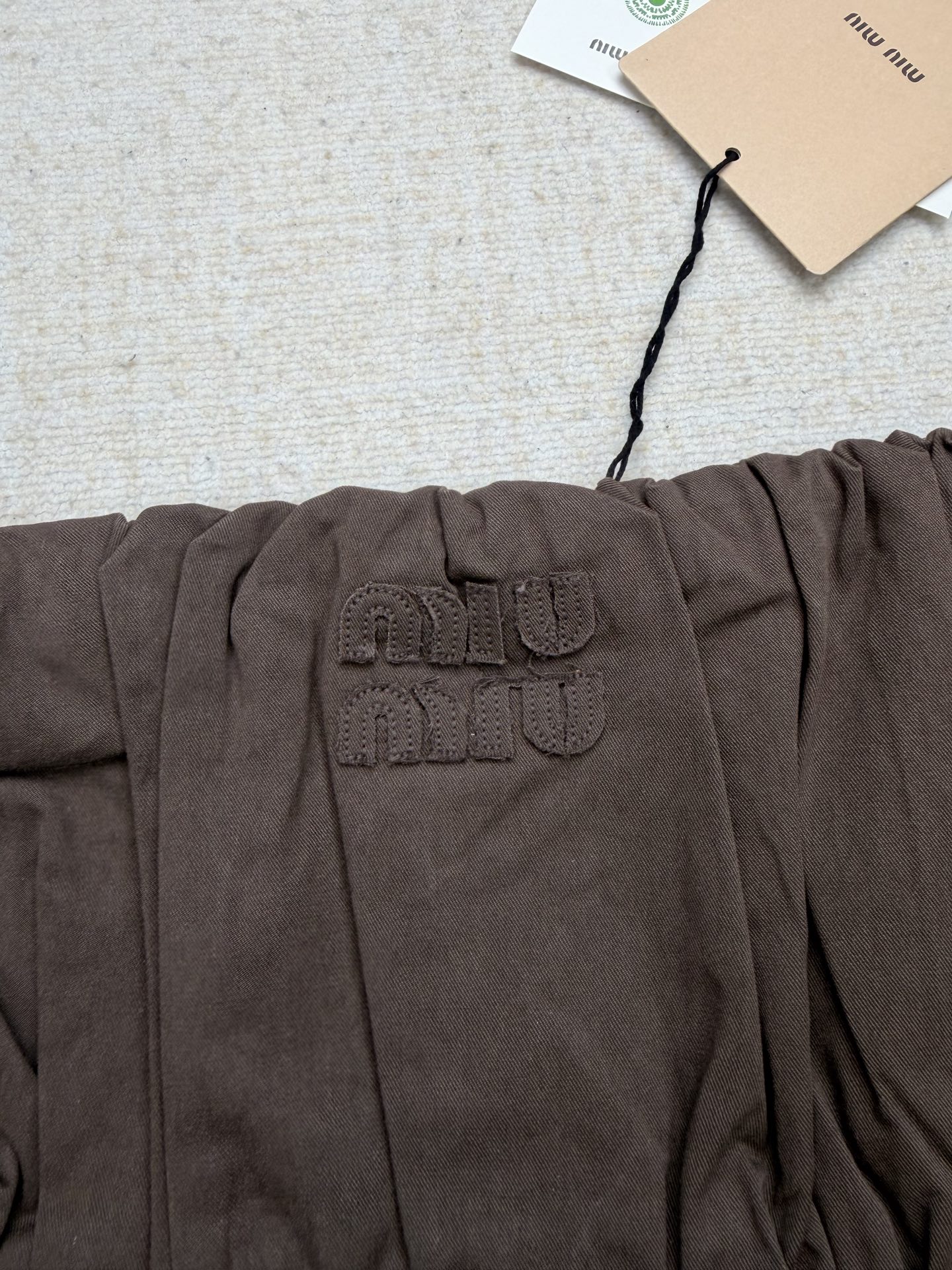 這款衣服是AAAAA 1:1 質量(非常棒). 使用了和原版一模一樣的材料. 商標部分也保持了和繆繆/Miu Miu一樣. 圖片拍攝是實物衣服拍攝, 您所收到的實物保證和我們圖片一模一樣.
