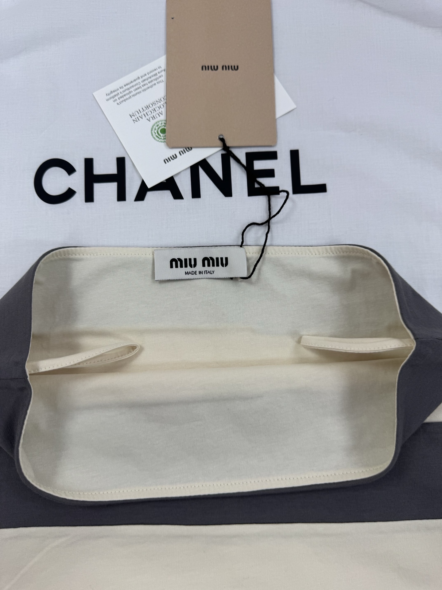 這款衣服是AAAAA 1:1 質量(非常棒). 使用了和原版一模一樣的材料. 商標部分也保持了和繆繆/Miu Miu一樣. 圖片拍攝是實物衣服拍攝, 您所收到的實物保證和我們圖片一模一樣.