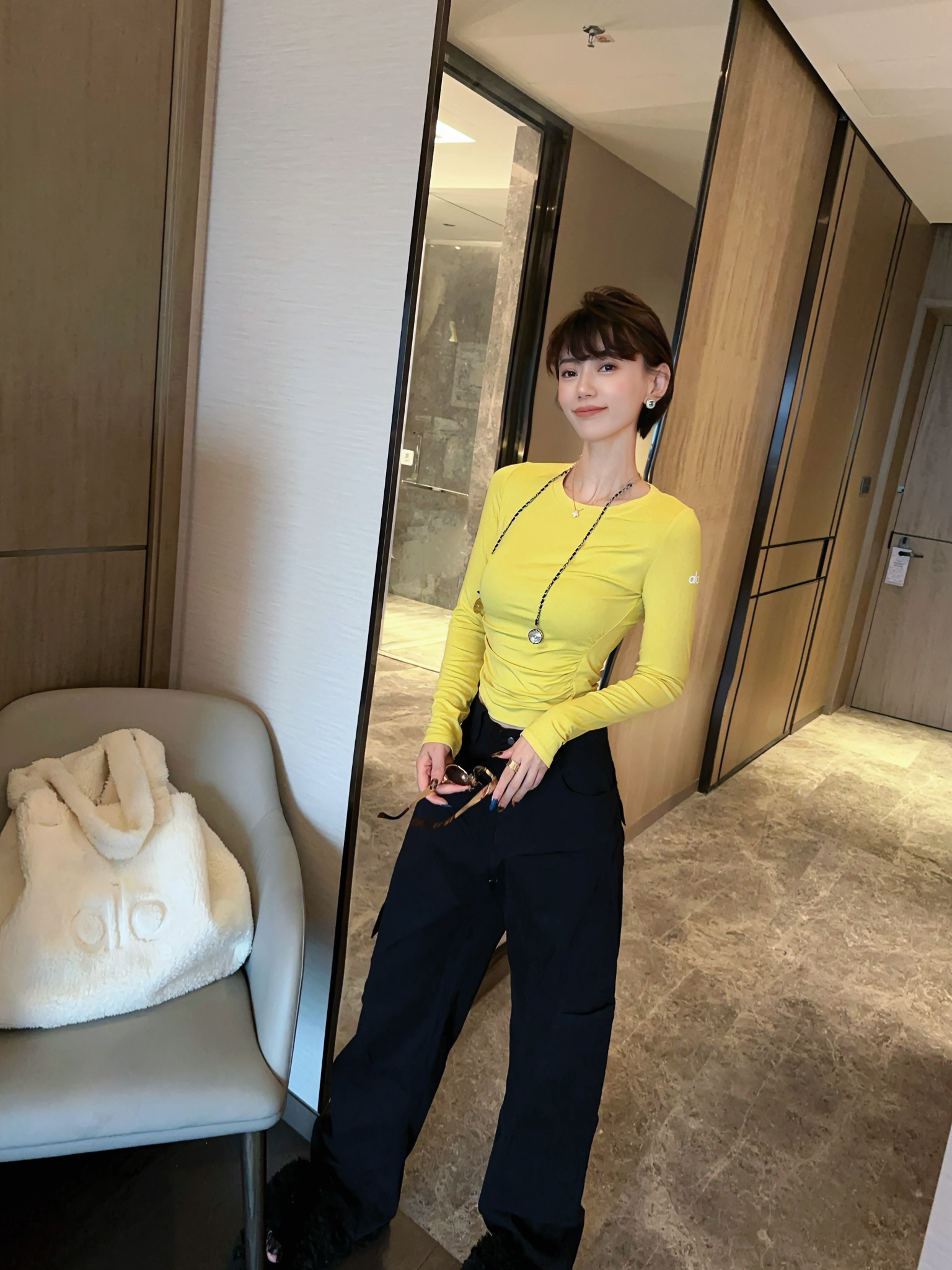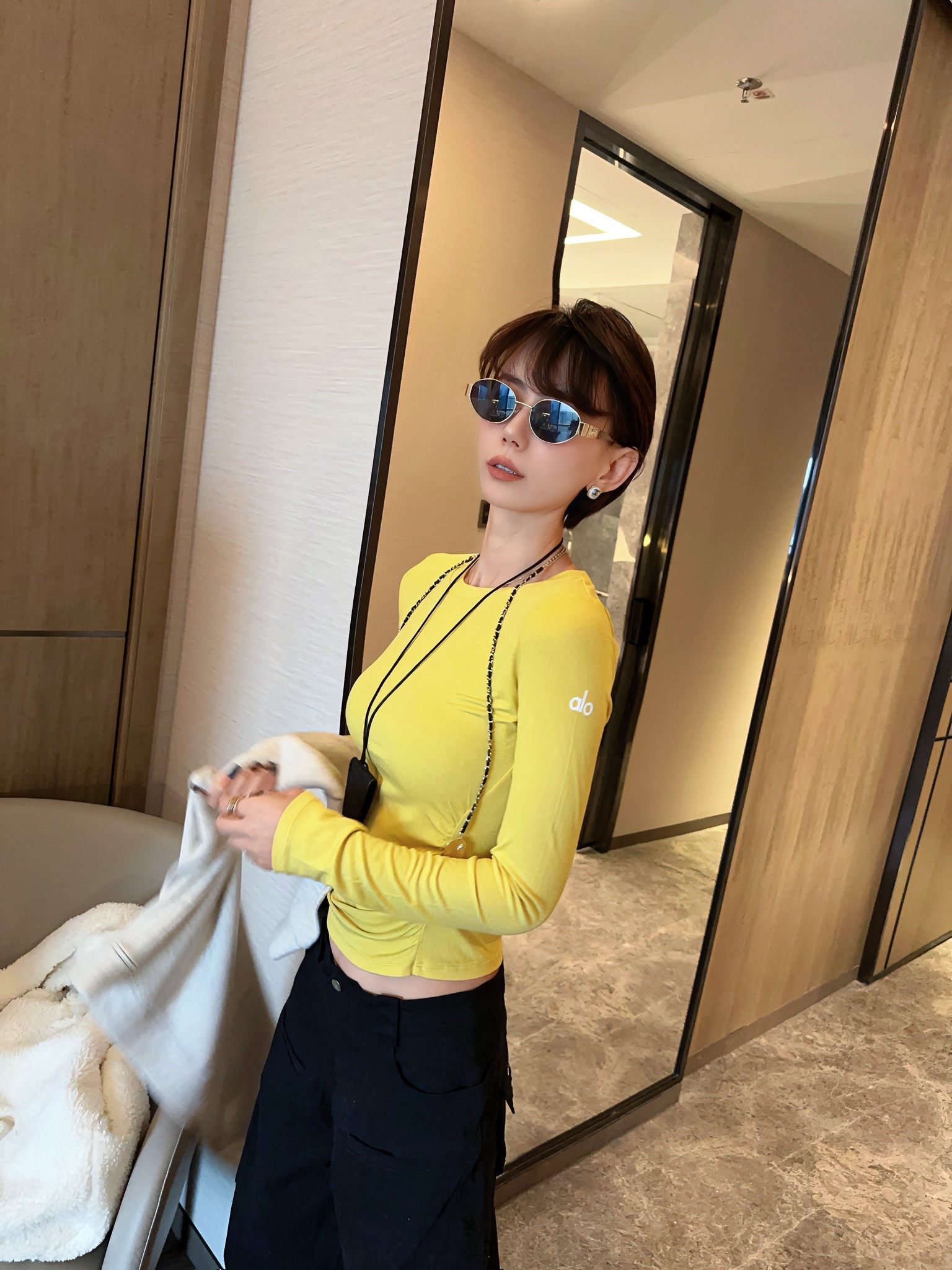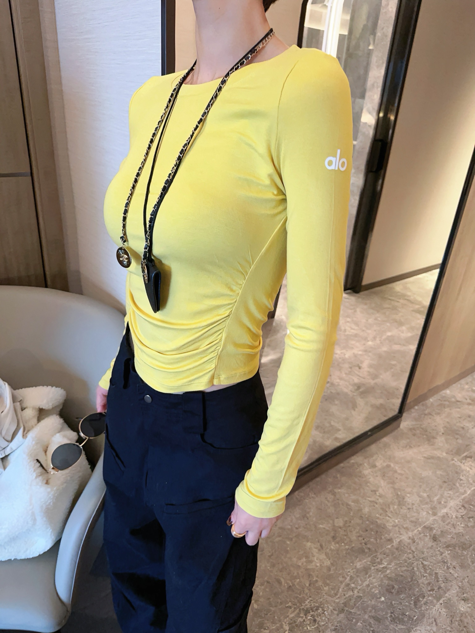 這款衣服是AAAAA 1:1 質量(非常棒). 使用了和原版一模一樣的材料. 商標部分也保持了和Alo Yoga一樣. 圖片拍攝是實物衣服拍攝, 您所收到的實物保證和我們圖片一模一樣.