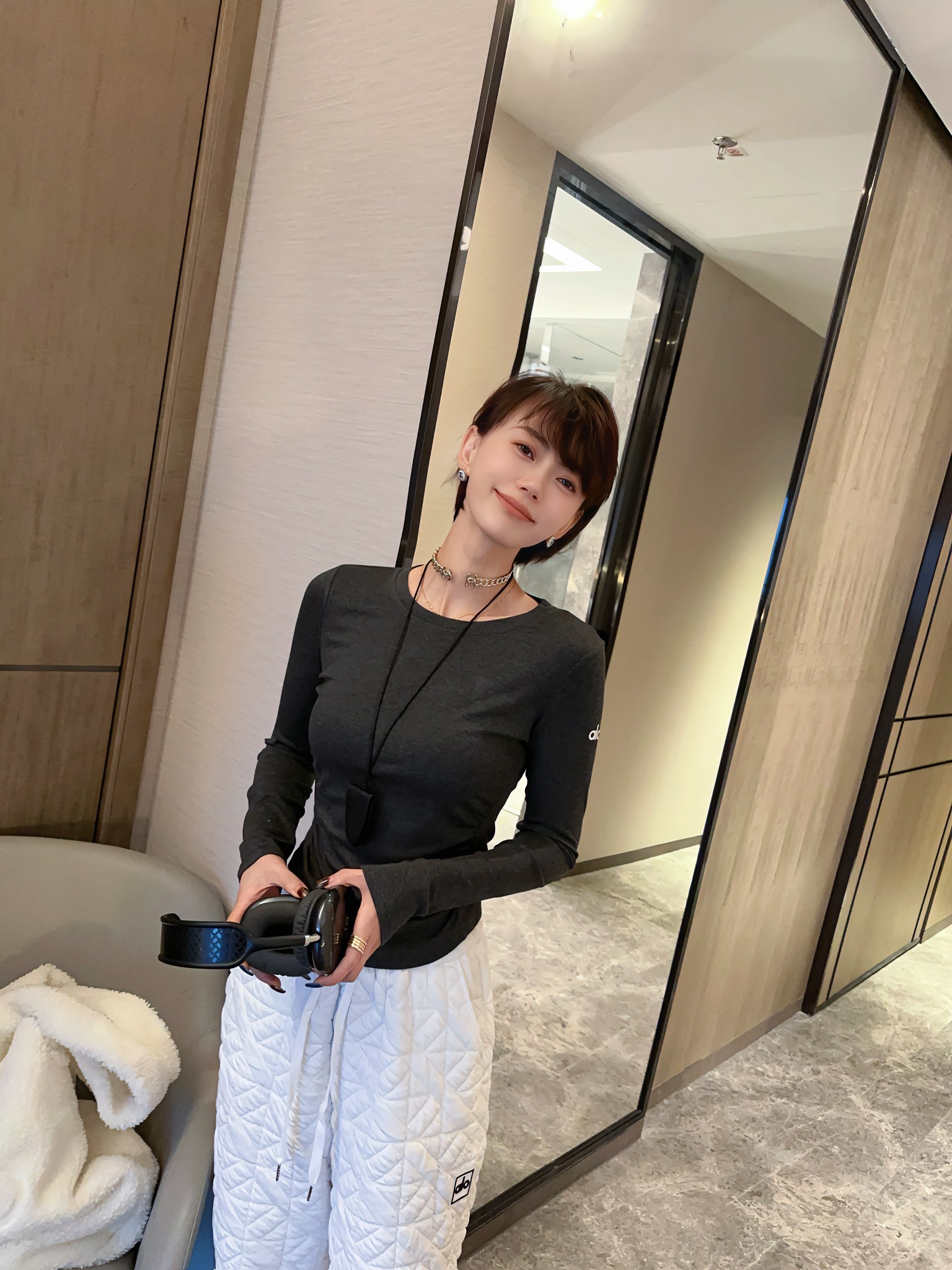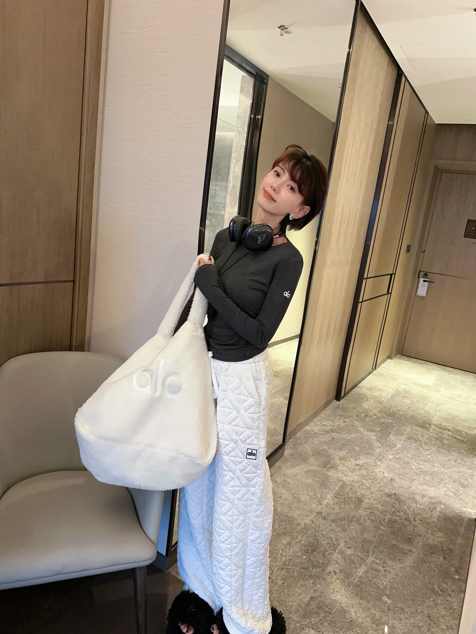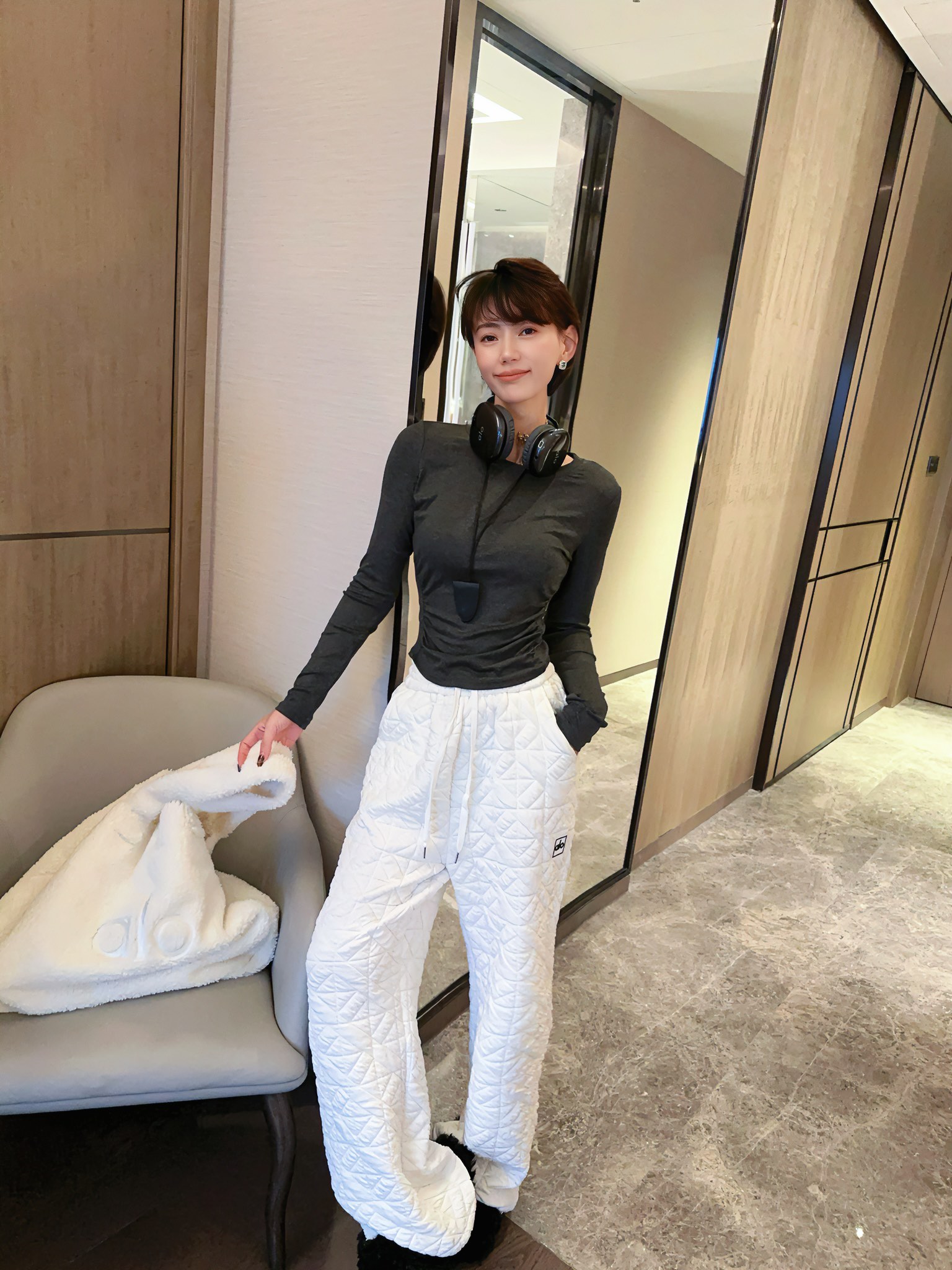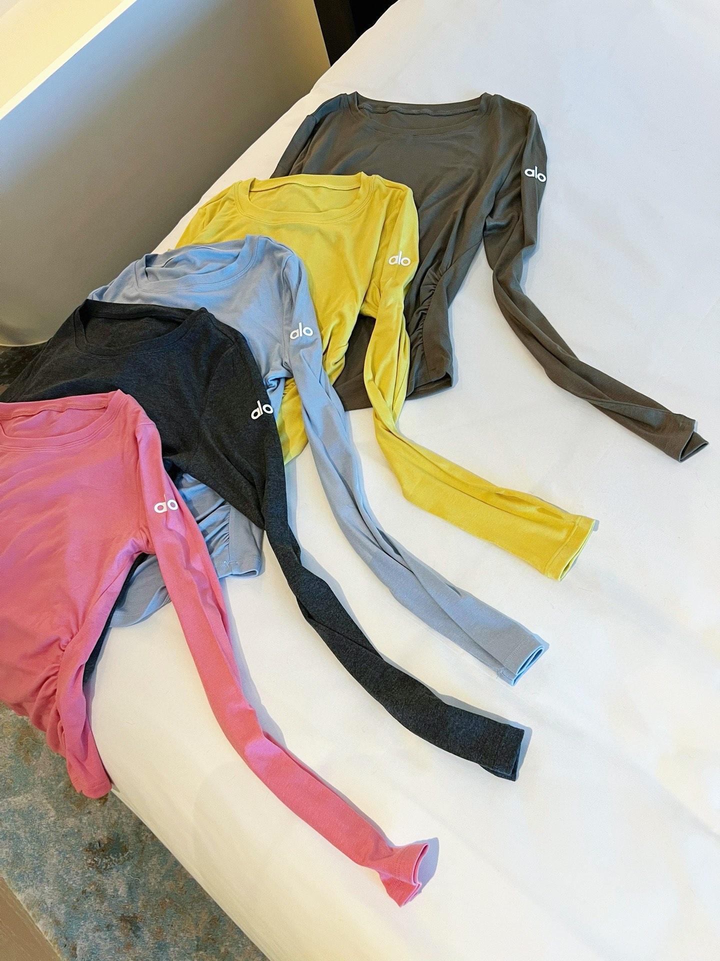 這款衣服是AAAAA 1:1 質量(非常棒). 使用了和原版一模一樣的材料. 商標部分也保持了和Alo Yoga一樣. 圖片拍攝是實物衣服拍攝, 您所收到的實物保證和我們圖片一模一樣.