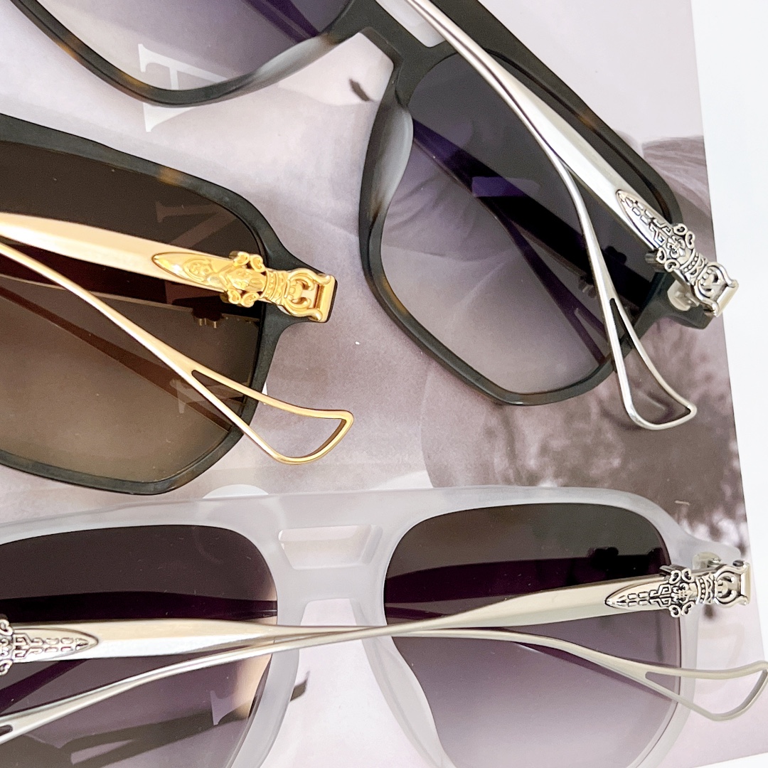 這款太陽眼鏡是AAAAA 1:1 質量(非常棒). 使用了和原版一模一樣的材料. 商標部分也保持了和鉻心/Chrome Hearts一樣. 圖片拍攝是實物太陽眼鏡拍攝, 您所收到的實物保證和我們圖片一模一樣.