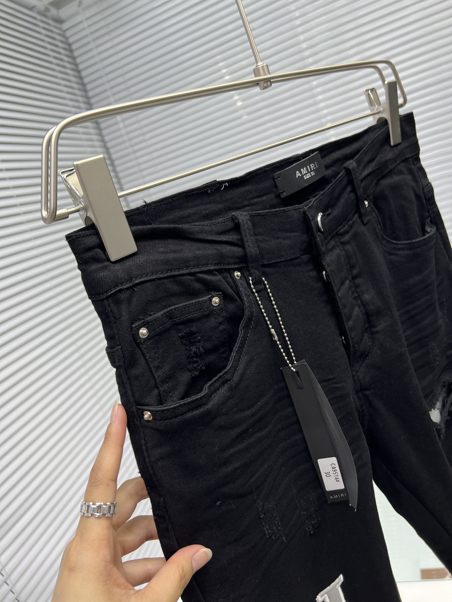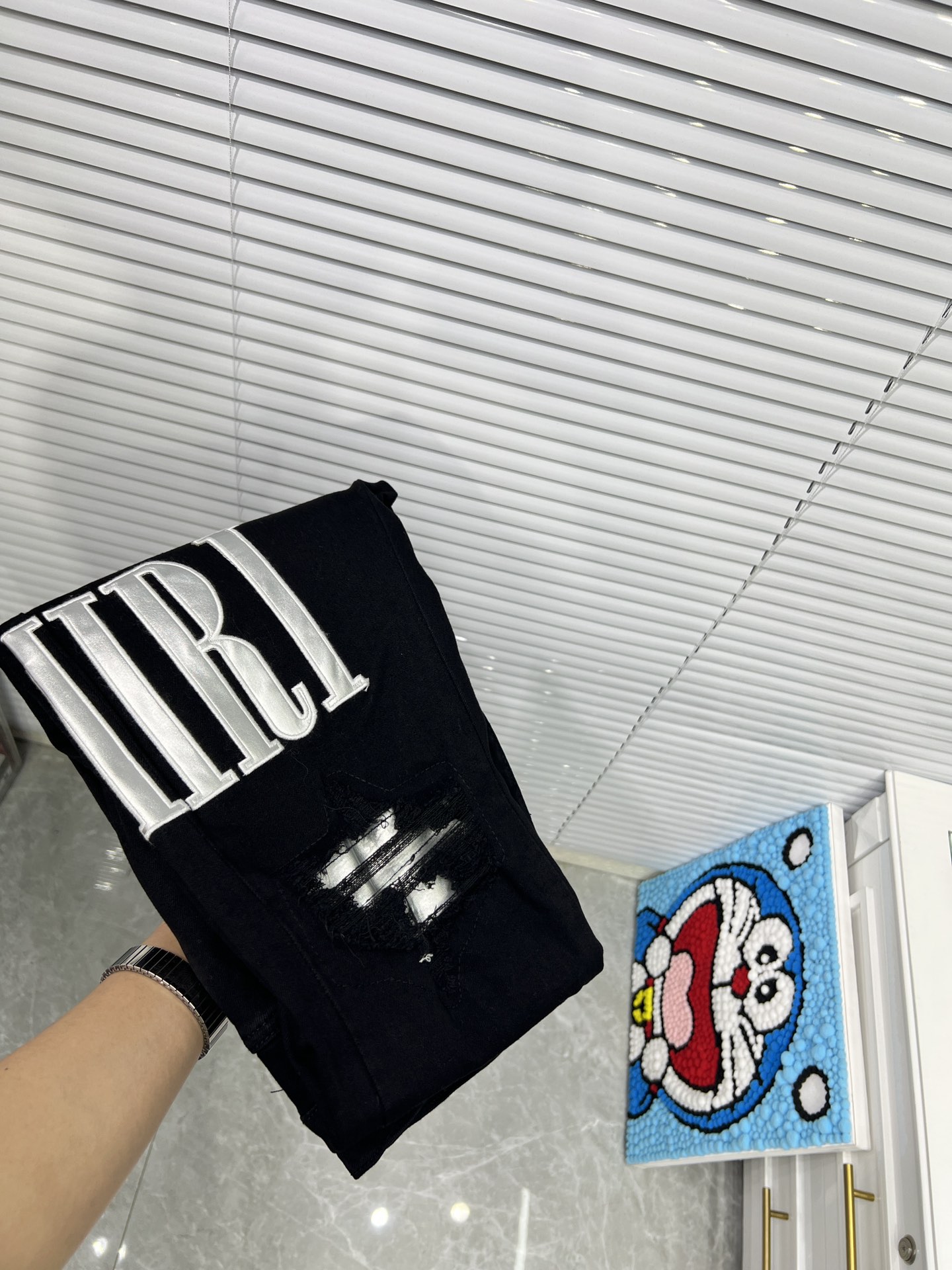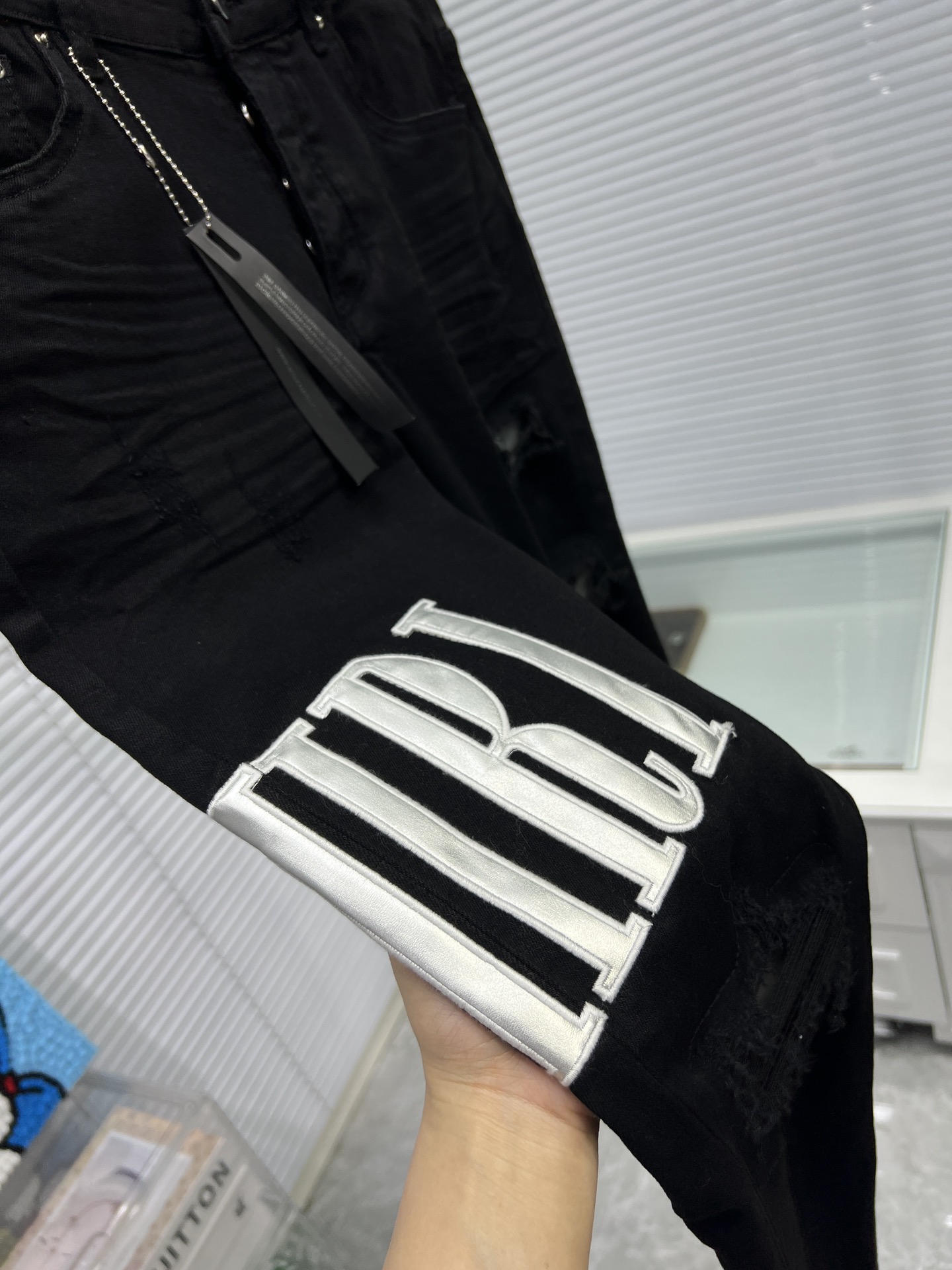 這款衣服是AAAAA 1:1 質量(非常棒). 使用了和原版一模一樣的材料. 商標部分也保持了和AMIRI一樣. 圖片拍攝是實物衣服拍攝, 您所收到的實物保證和我們圖片一模一樣.