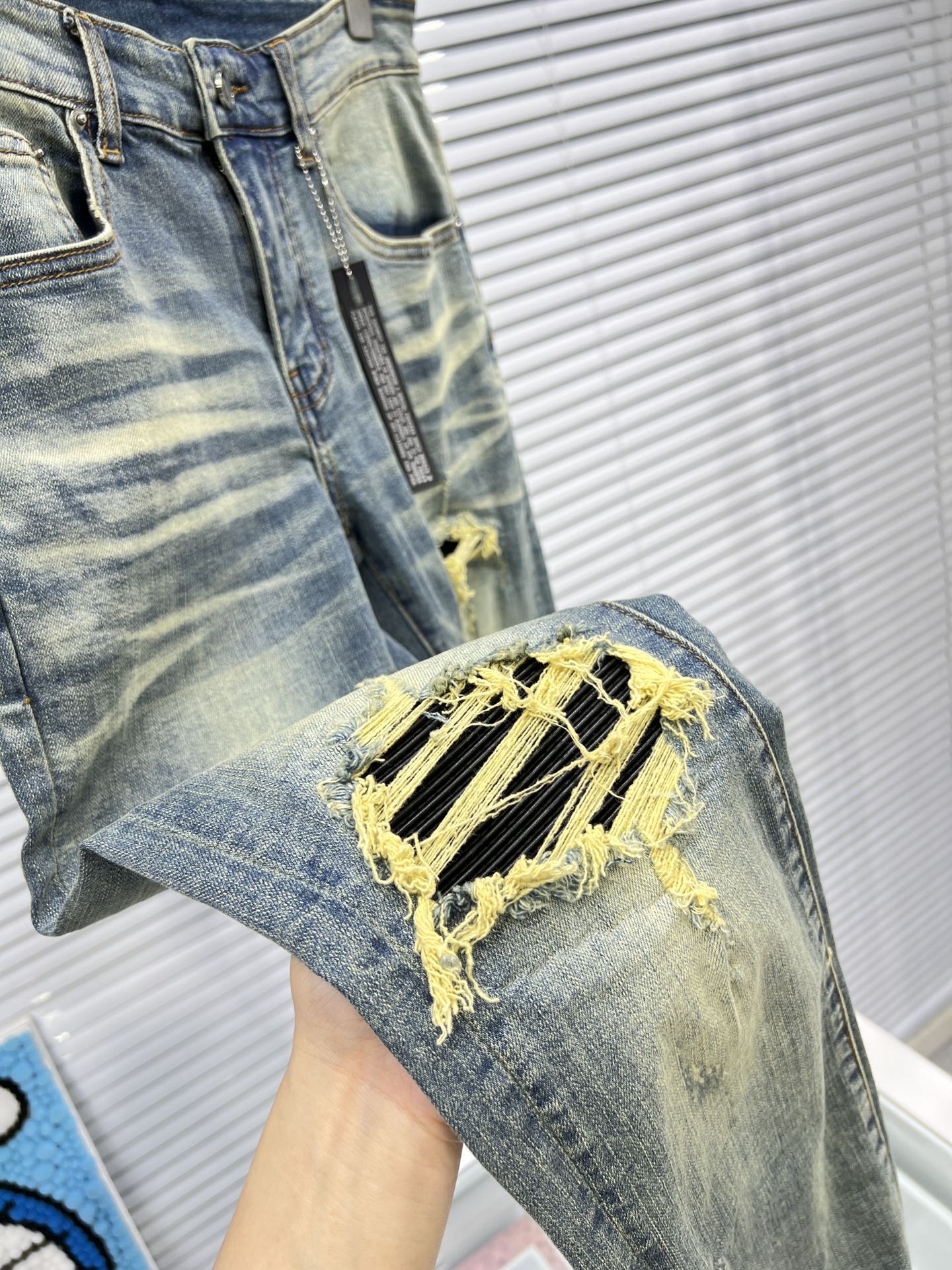這款衣服是AAAAA 1:1 質量(非常棒). 使用了和原版一模一樣的材料. 商標部分也保持了和AMIRI一樣. 圖片拍攝是實物衣服拍攝, 您所收到的實物保證和我們圖片一模一樣.