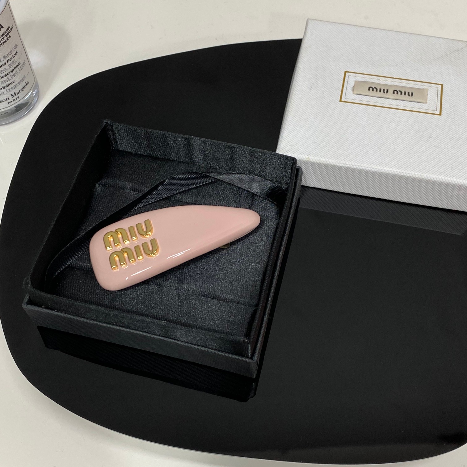 這款hair accessories是AAAAA 1:1 質量(非常棒). 使用了和原版一模一樣的材料. 商標部分也保持了和繆繆/Miu Miu一樣. 圖片拍攝是實物hair accessories拍攝, 您所收到的實物保證和我們圖片一模一樣.