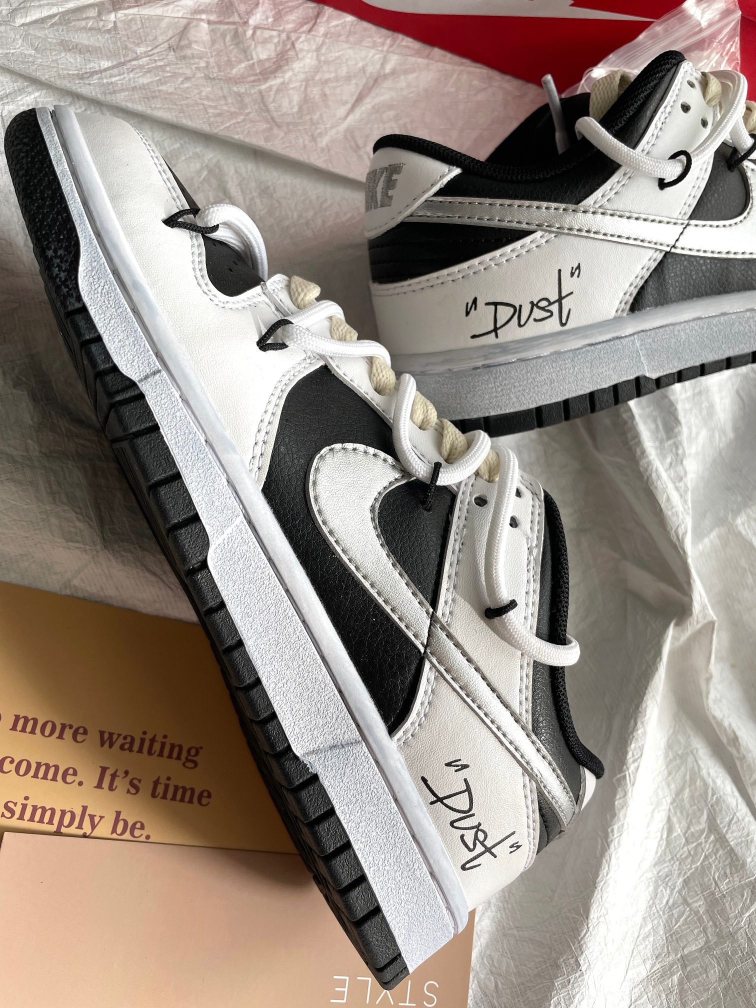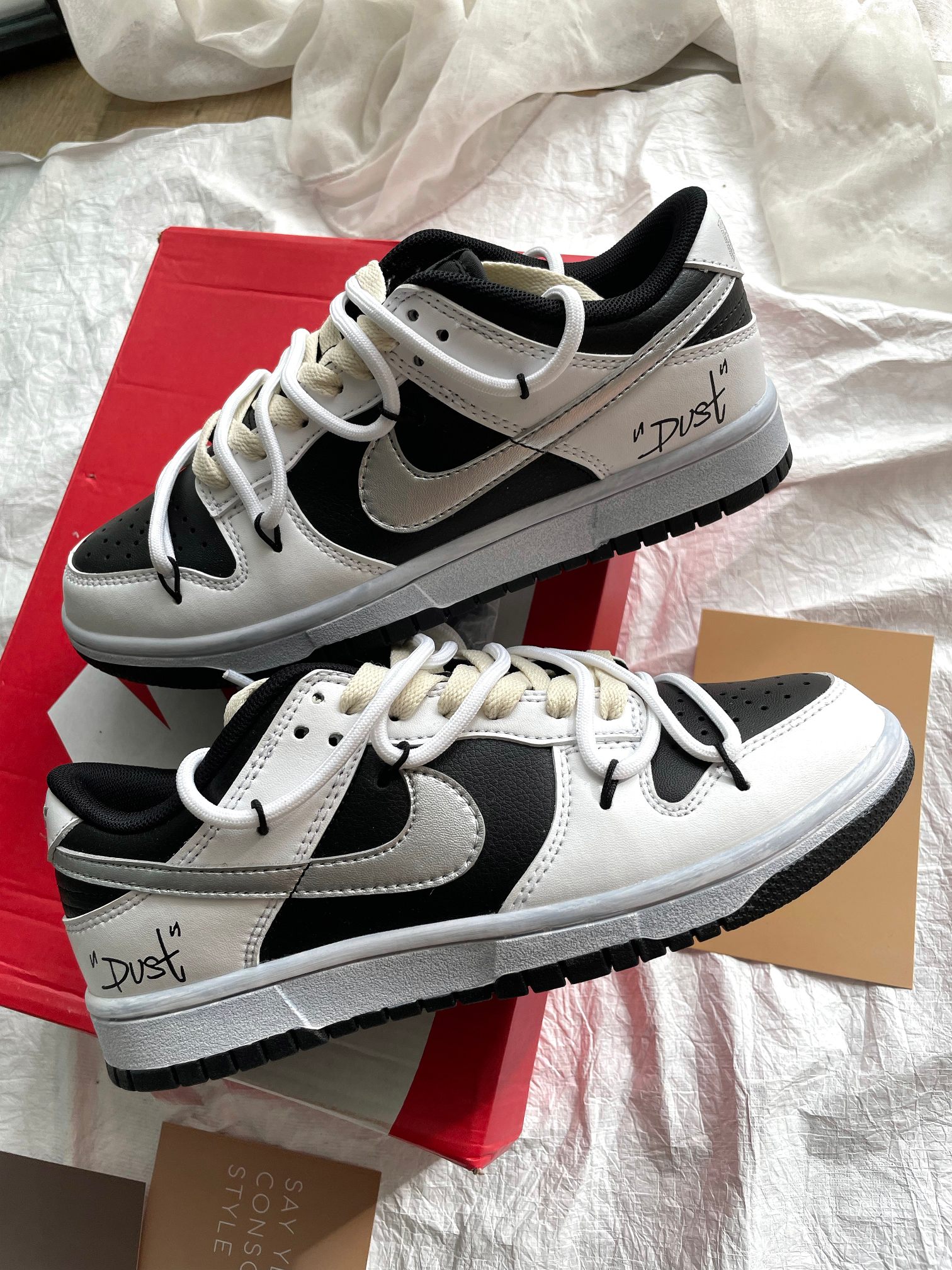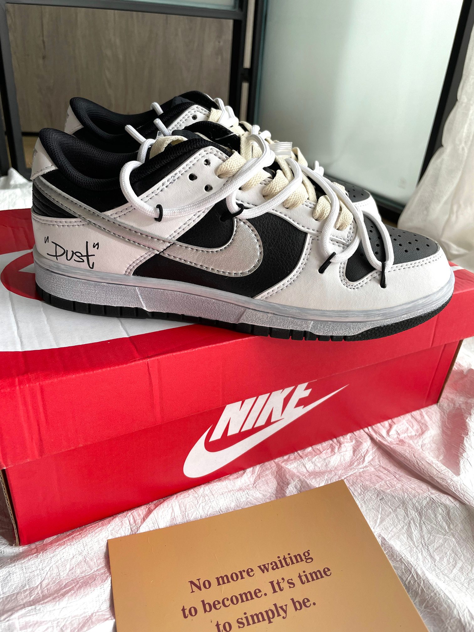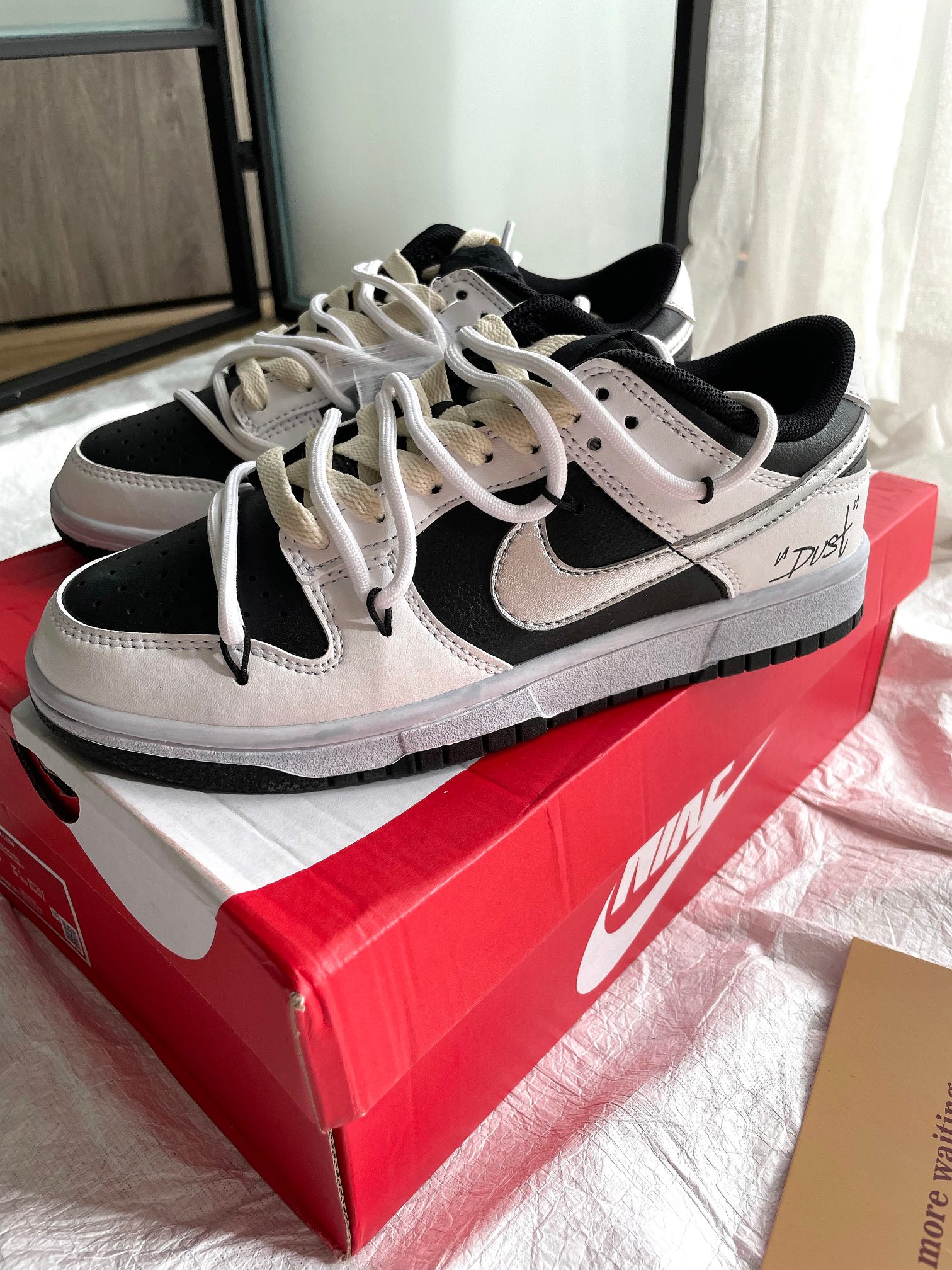 這款鞋子是AAAAA 1:1 質量(非常棒). 使用了和原版一模一樣的材料. 商標部分也保持了和Nike一樣. 圖片拍攝是實物鞋子拍攝, 您所收到的實物保證和我們圖片一模一樣.