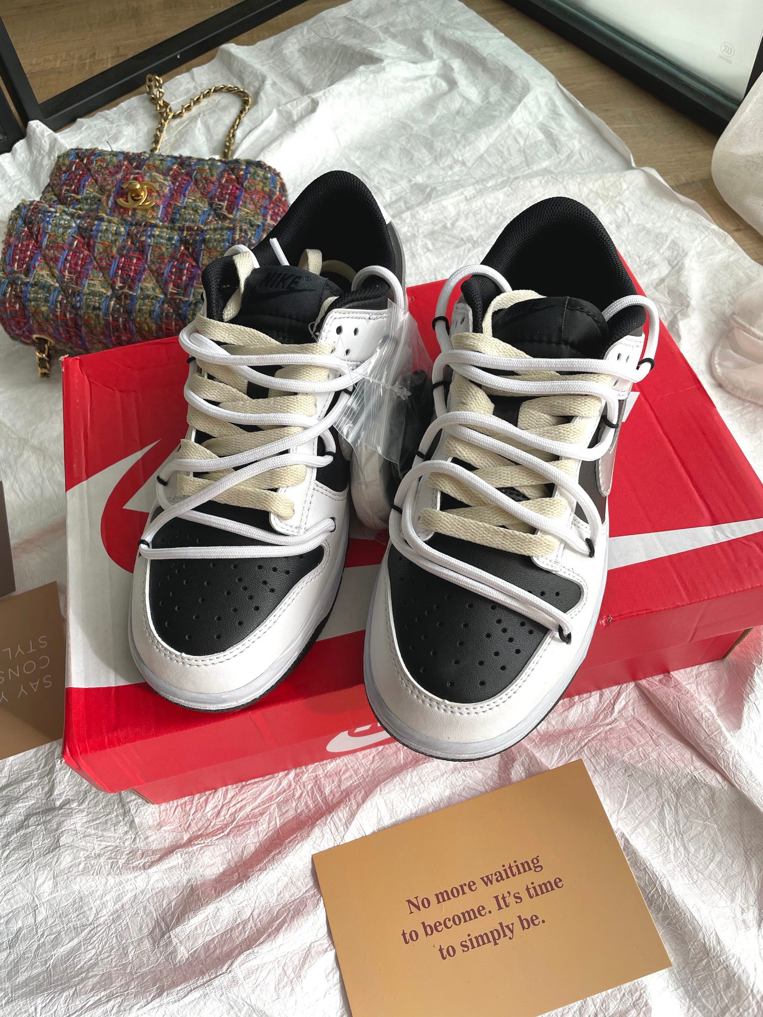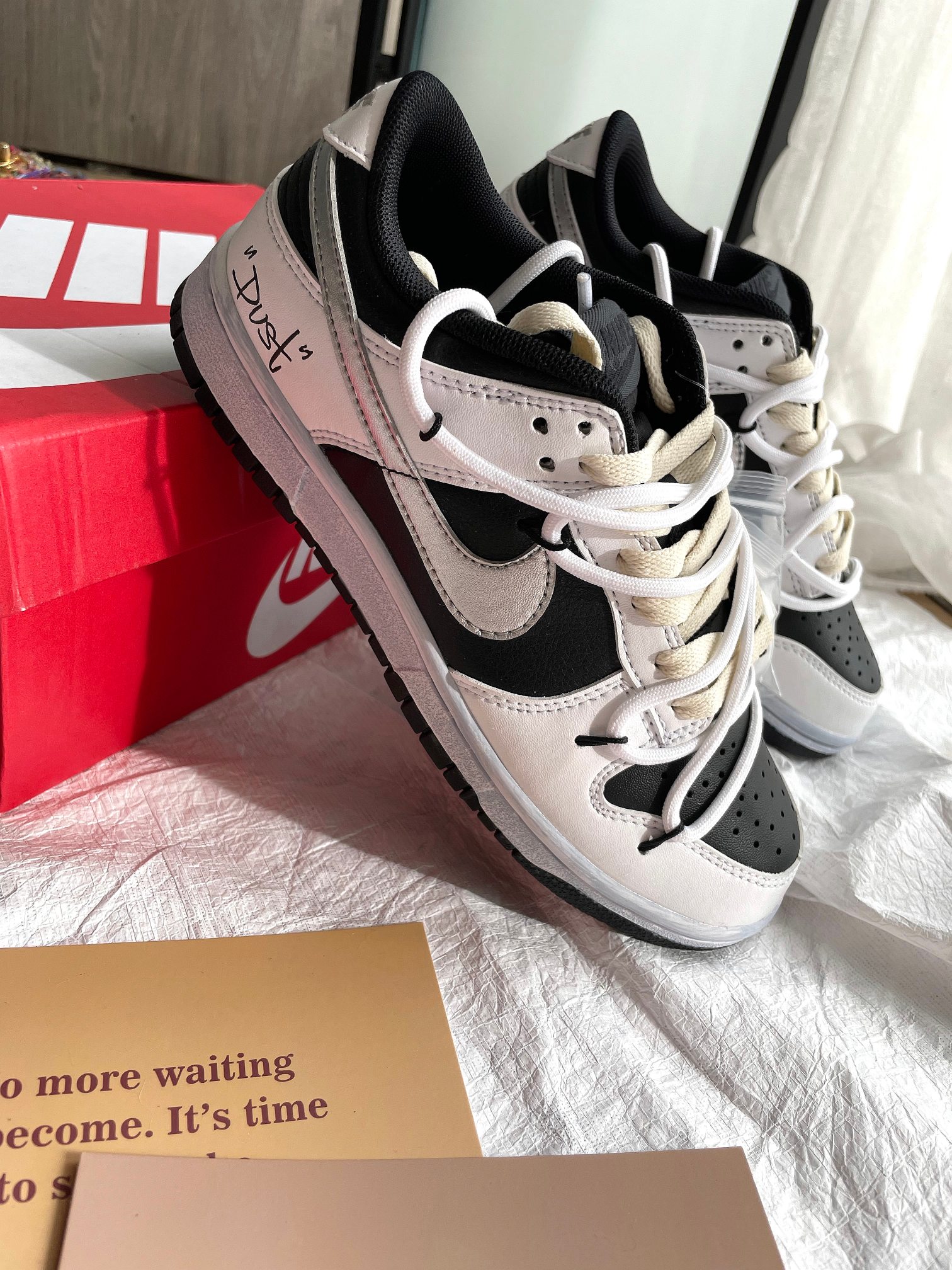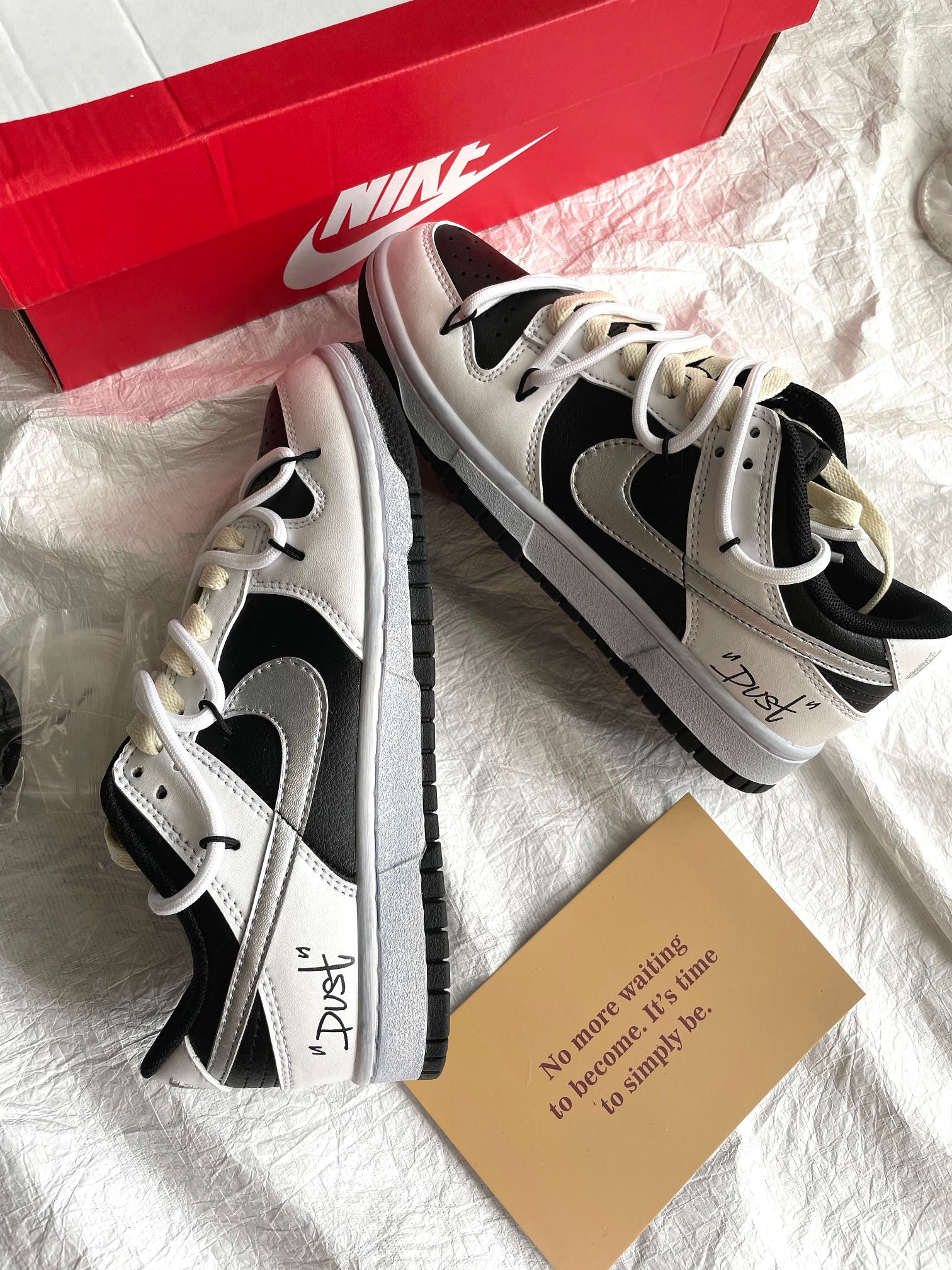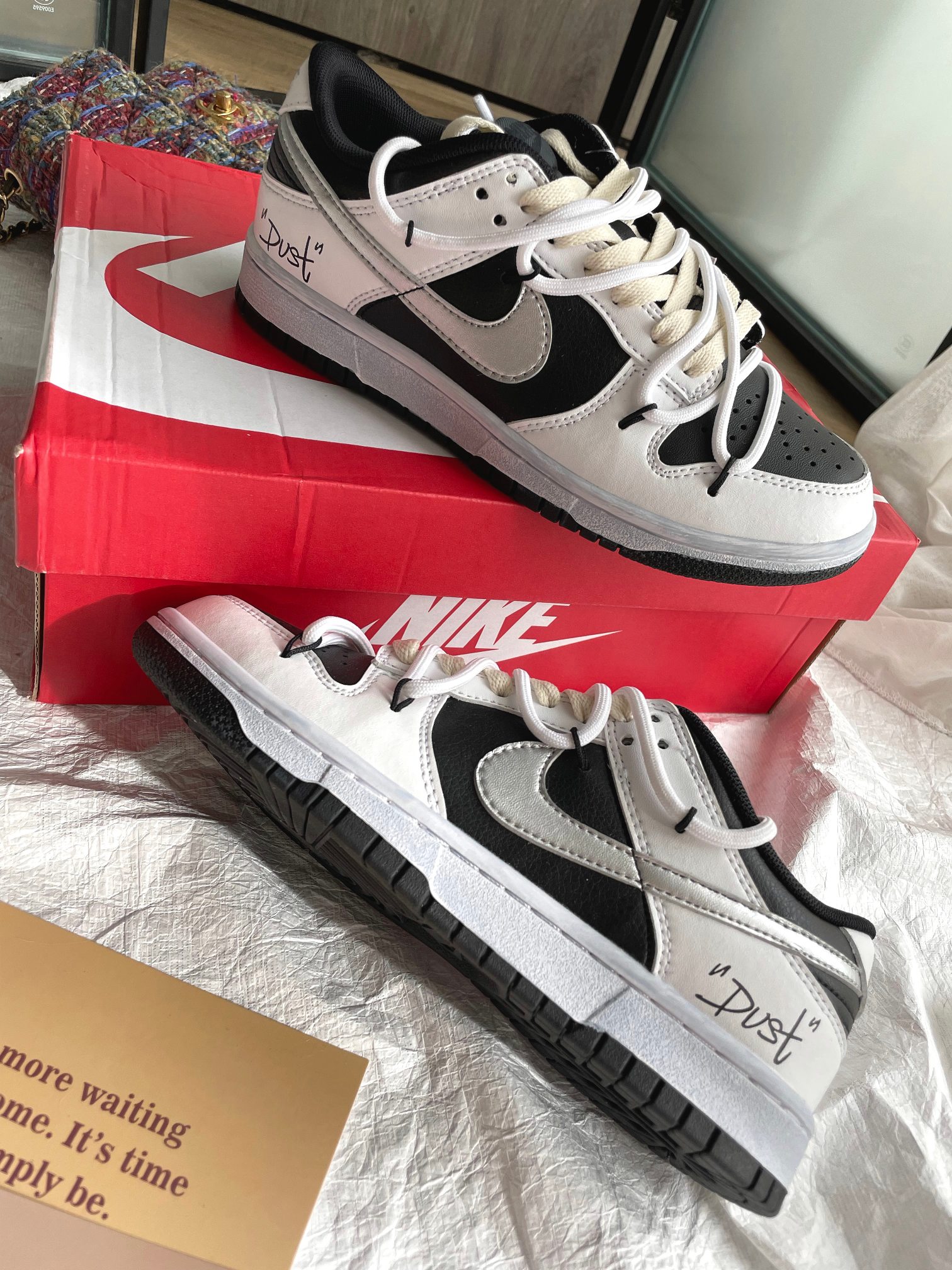 這款鞋子是AAAAA 1:1 質量(非常棒). 使用了和原版一模一樣的材料. 商標部分也保持了和Nike一樣. 圖片拍攝是實物鞋子拍攝, 您所收到的實物保證和我們圖片一模一樣.