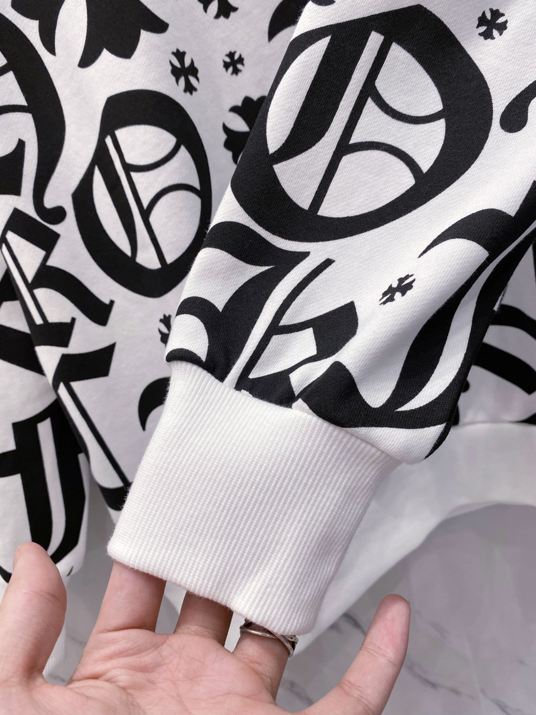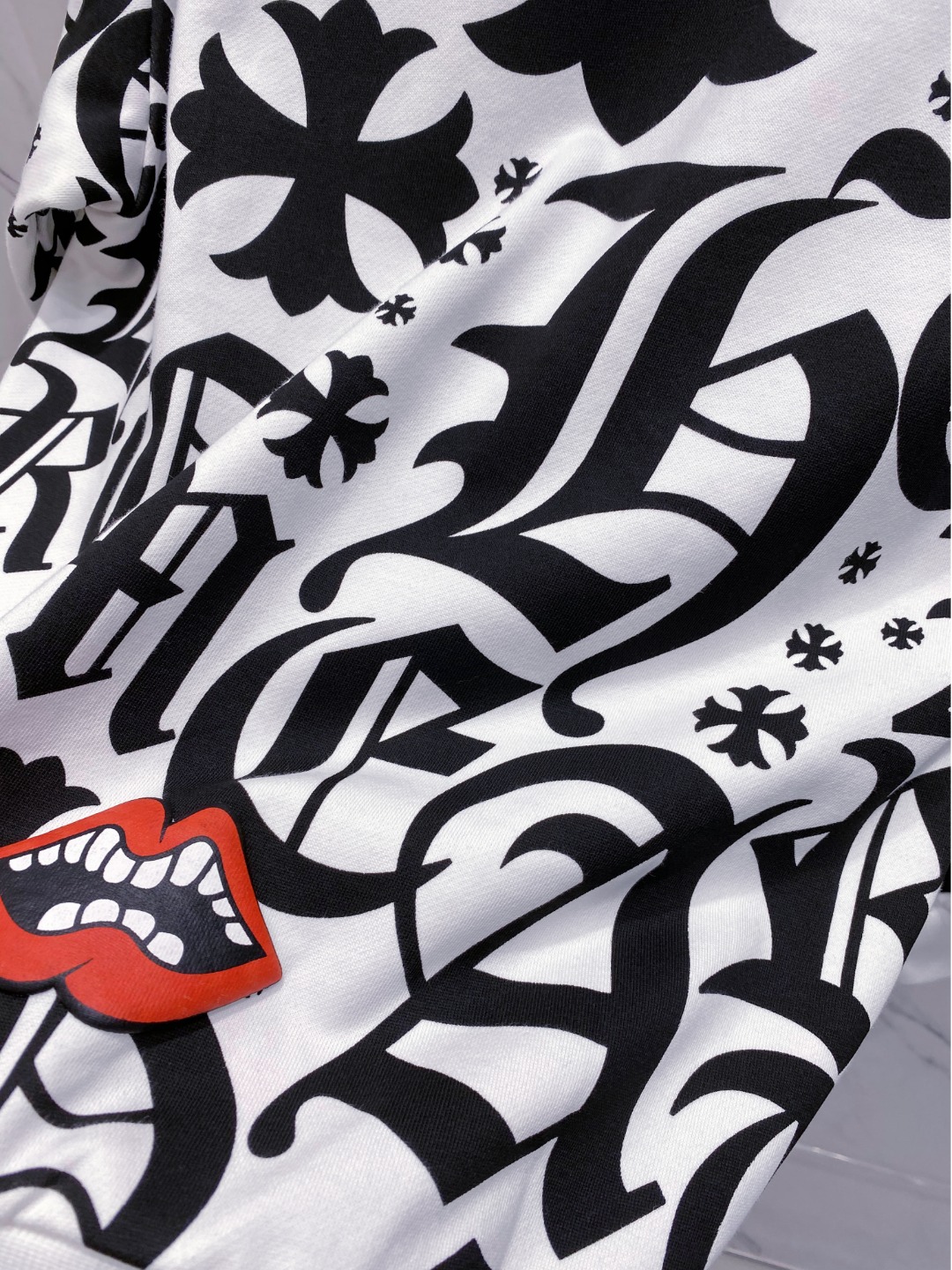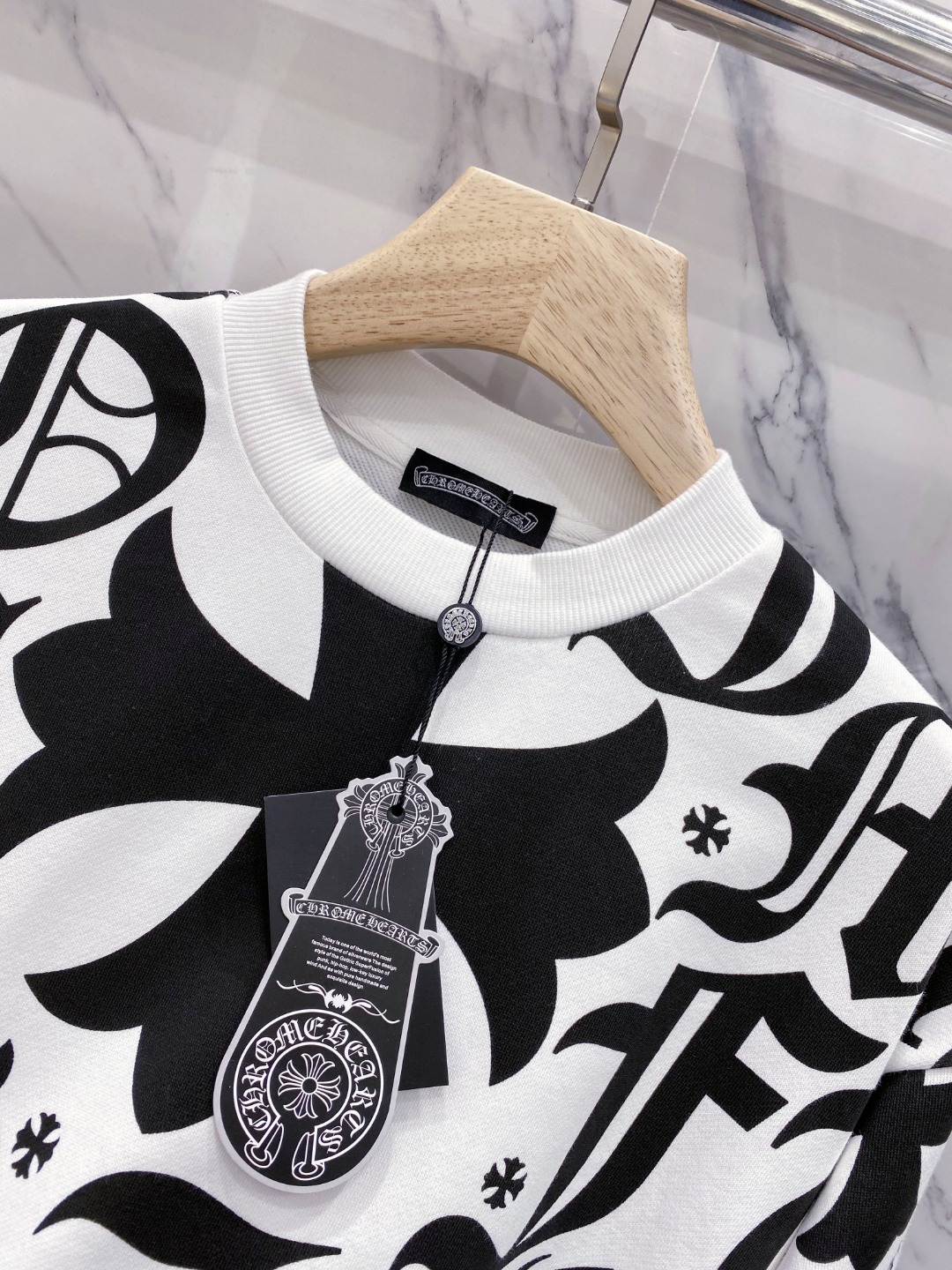 這款衣服是AAAAA 1:1 質量(非常棒). 使用了和原版一模一樣的材料. 商標部分也保持了和鉻心/Chrome Hearts一樣. 圖片拍攝是實物衣服拍攝, 您所收到的實物保證和我們圖片一模一樣.