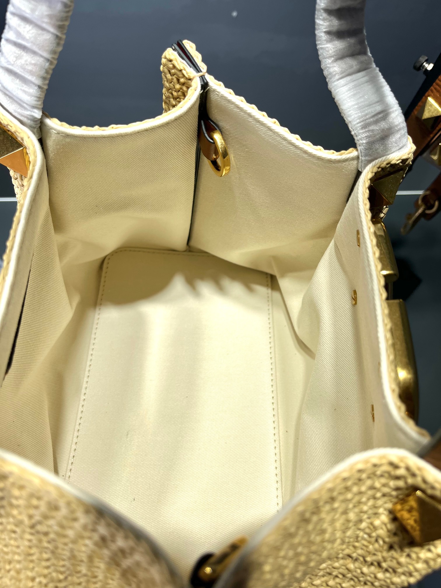 這款包包是AAAAA 1:1 質量(非常棒). 使用了和原版一模一樣的材料. 商標部分也保持了和瓦倫蒂諾/Valentino一樣. 圖片拍攝是實物包包拍攝, 您所收到的實物保證和我們圖片一模一樣.